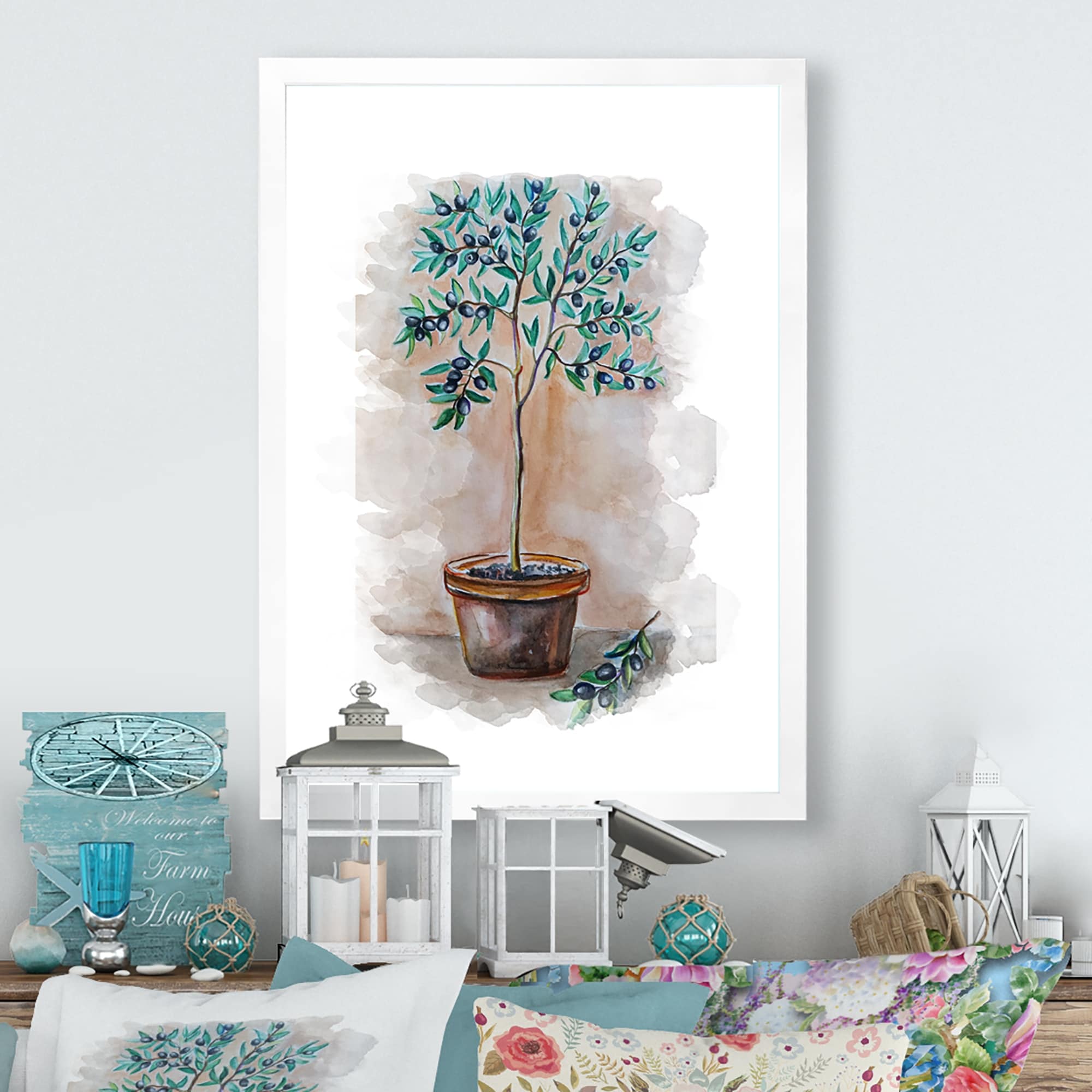 Designart "Green Olive Tree Pot" Traditional Framed Art Print
