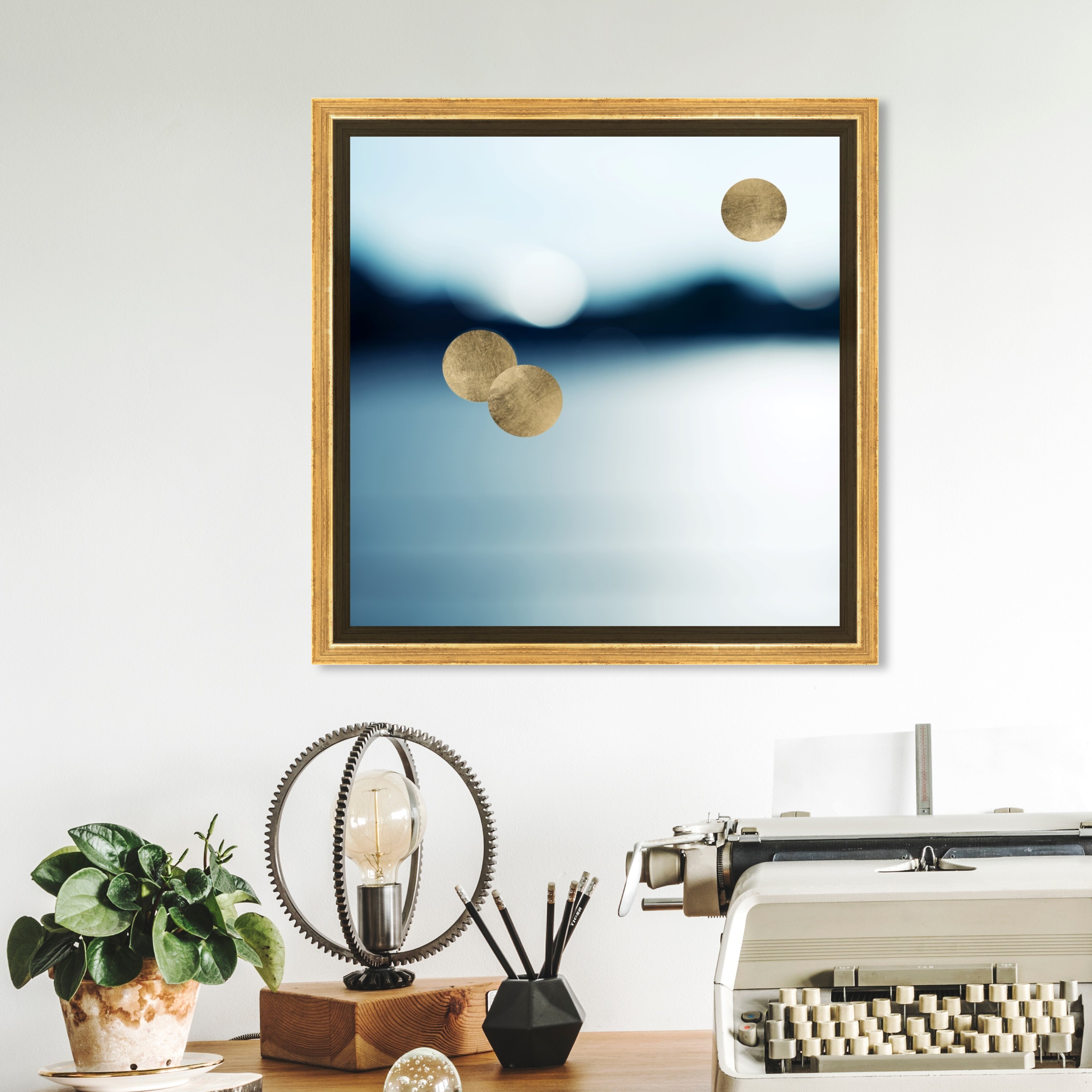 Oliver Gal 'Orb of Night' Abstract Wall Art Framed Canvas Print Geometric - Blue, Gold