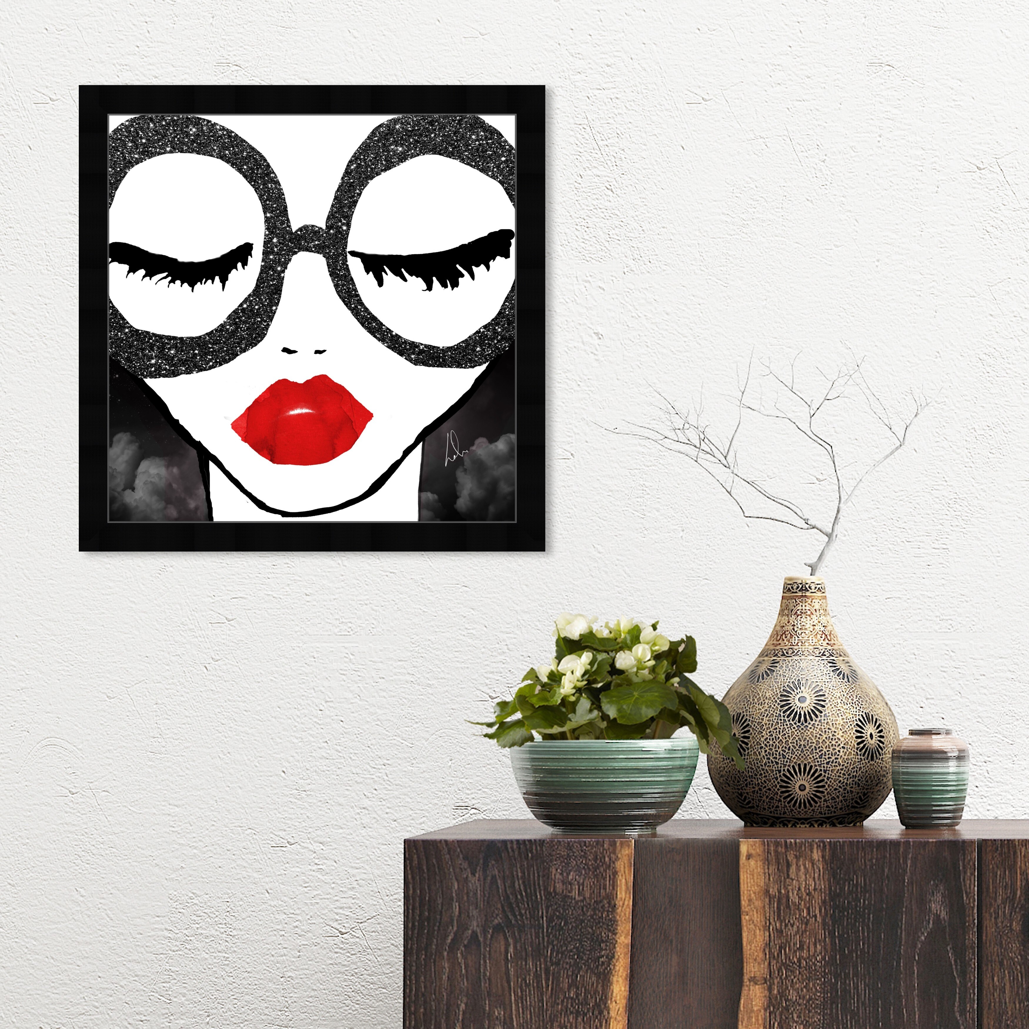 Oliver Gal 'She is all that' Fashion and Glam Framed Wall Art Prints Portraits - Black, Red