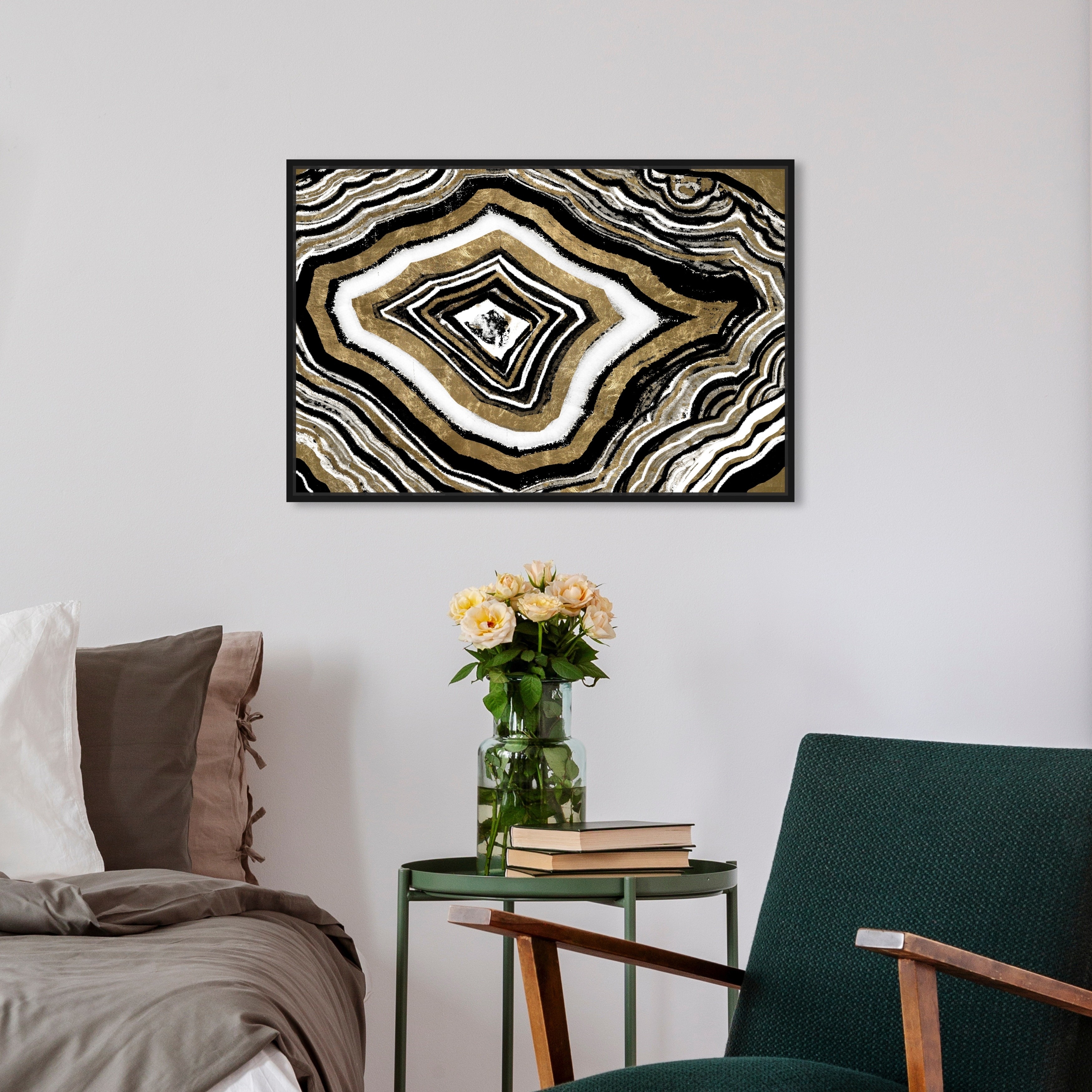 Oliver Gal 'Unalterable Geode' Abstract Wall Art Framed Canvas Print Crystals - Gold, Black