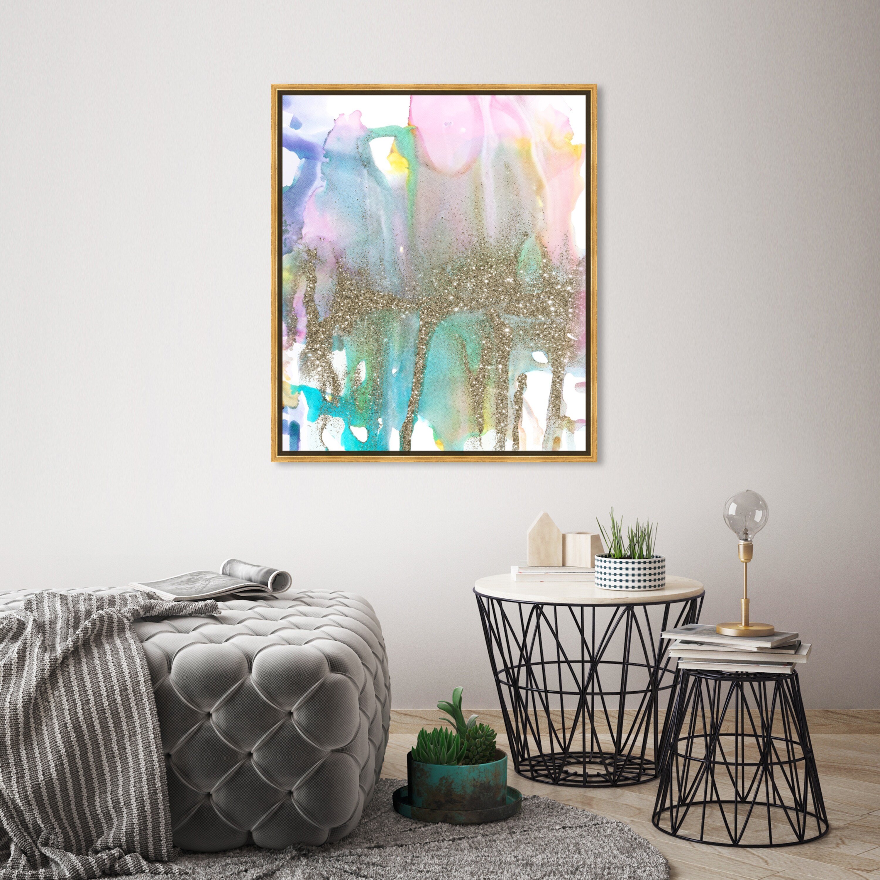 Oliver Gal 'Pastel Vision II' Abstract Wall Art Framed Canvas Print Watercolor - Pink, Gold