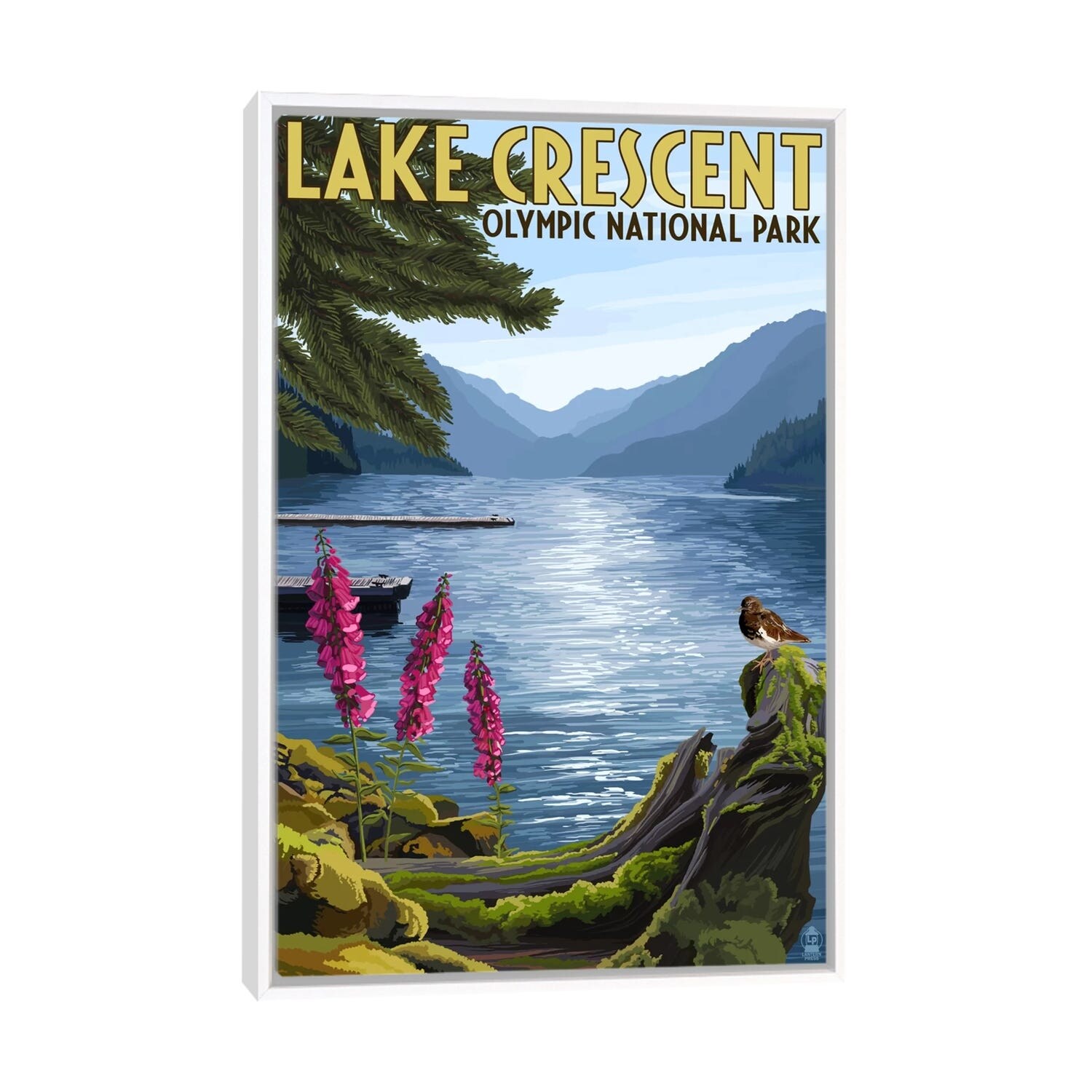 iCanvas "Olympic National Park (Lake Crescent)" by Lantern Press Framed Canvas Print