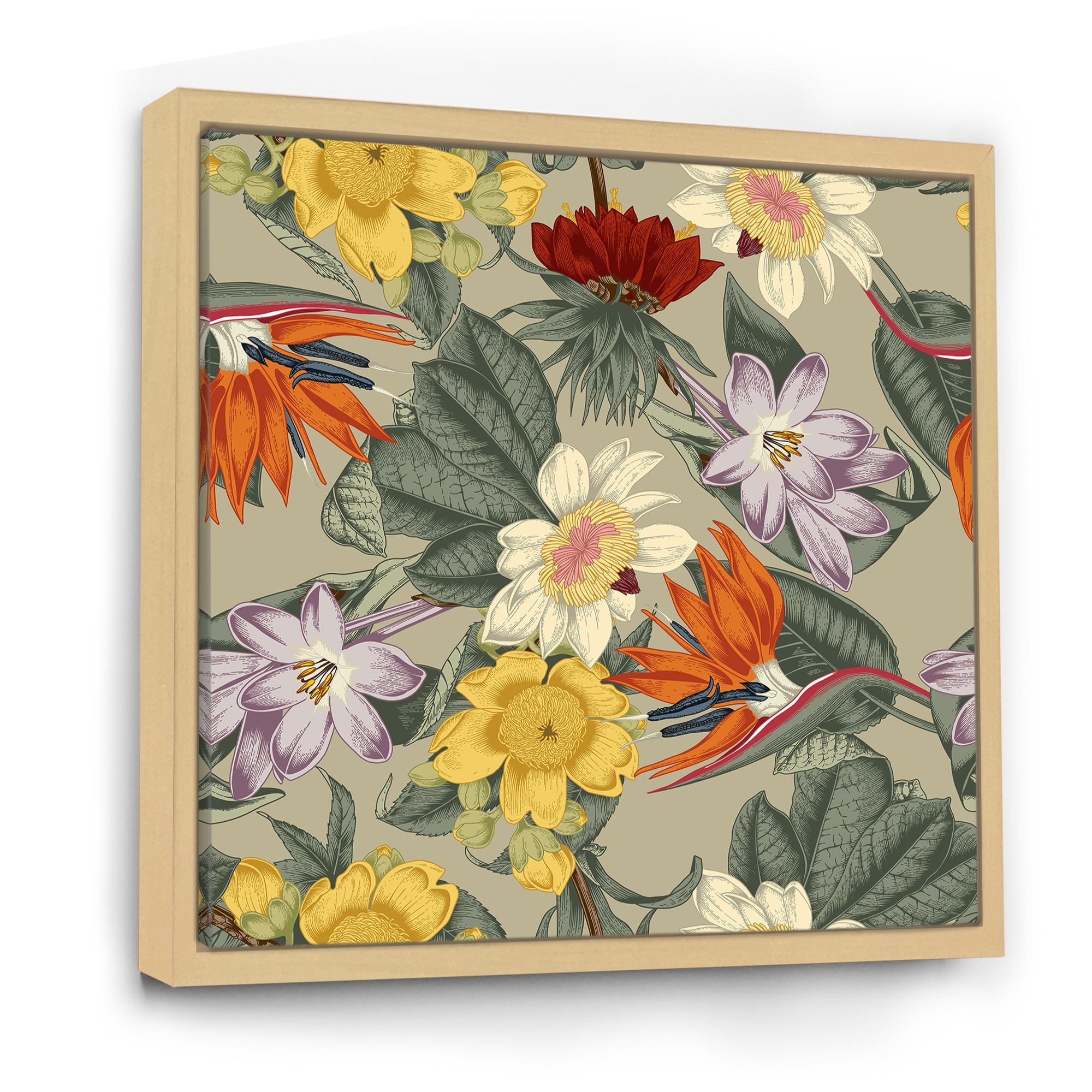 Designart "Vintage Exotic Flowers in Orange and Yellow" Traditional Framed Canvas Wall Art Print