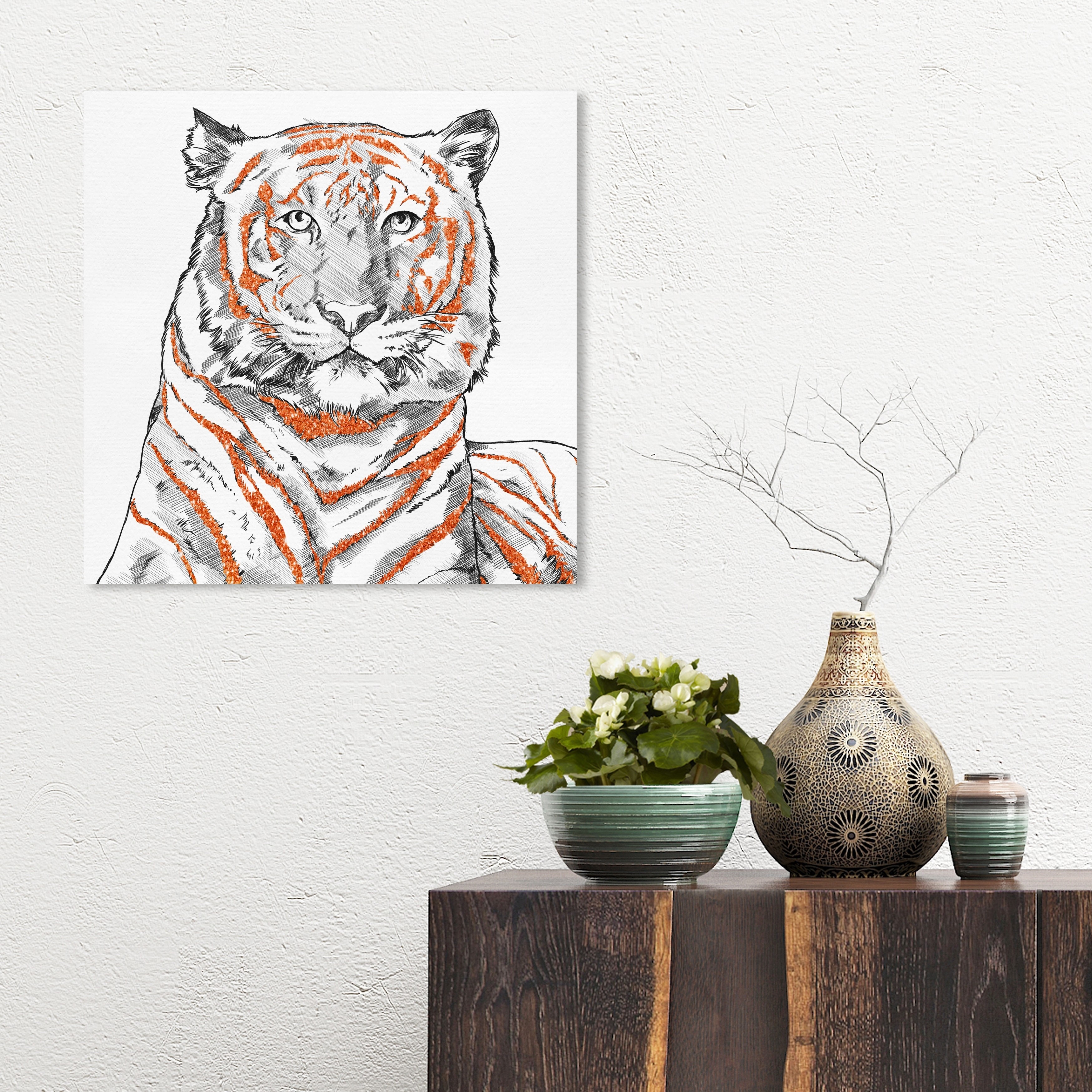 Oliver Gal 'Glitter Tiger Orange' Animals Wall Art Canvas Print Felines - Orange, White