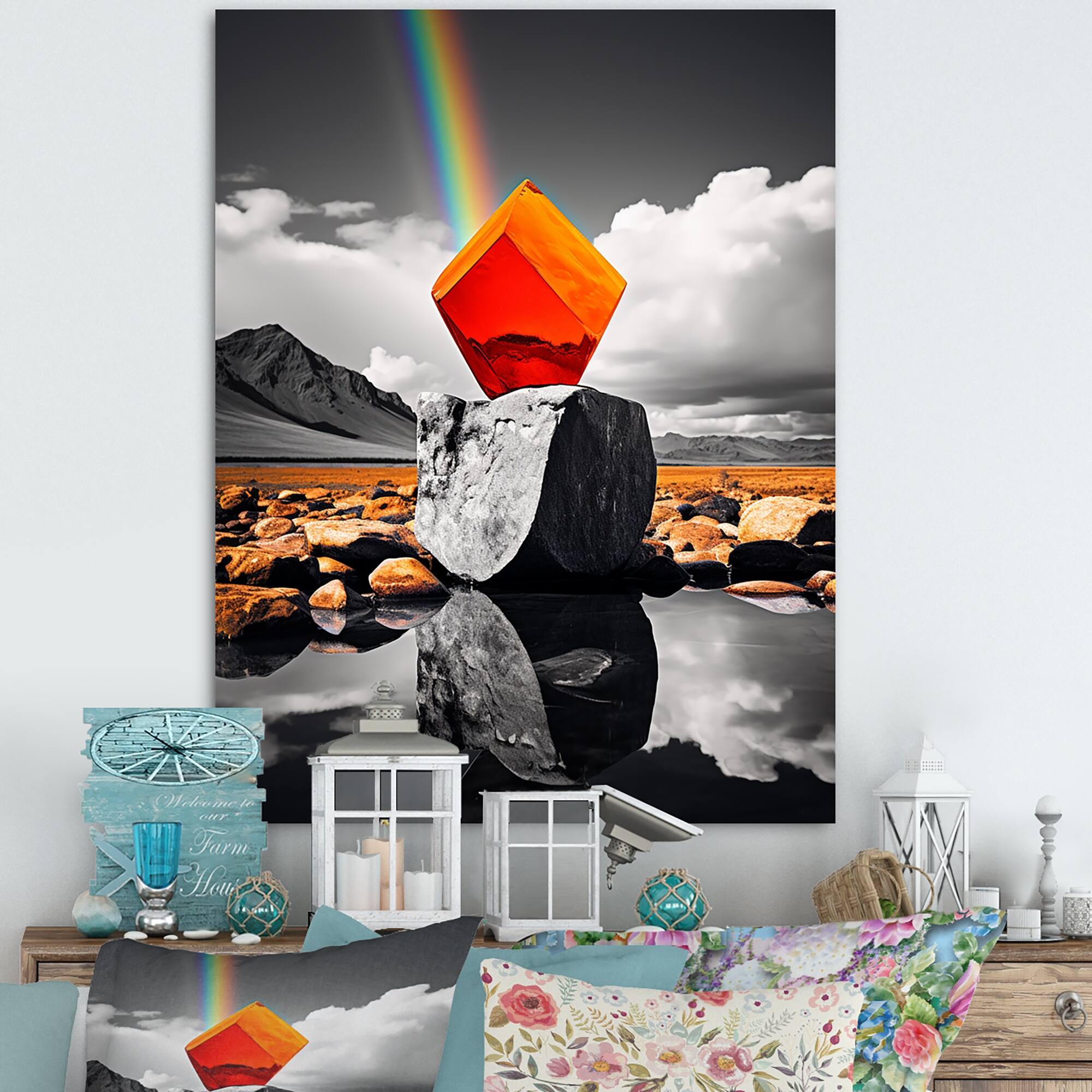 Designart "Monochromatic Landscape & Orange Prism" Rainbow Canvas Art Print