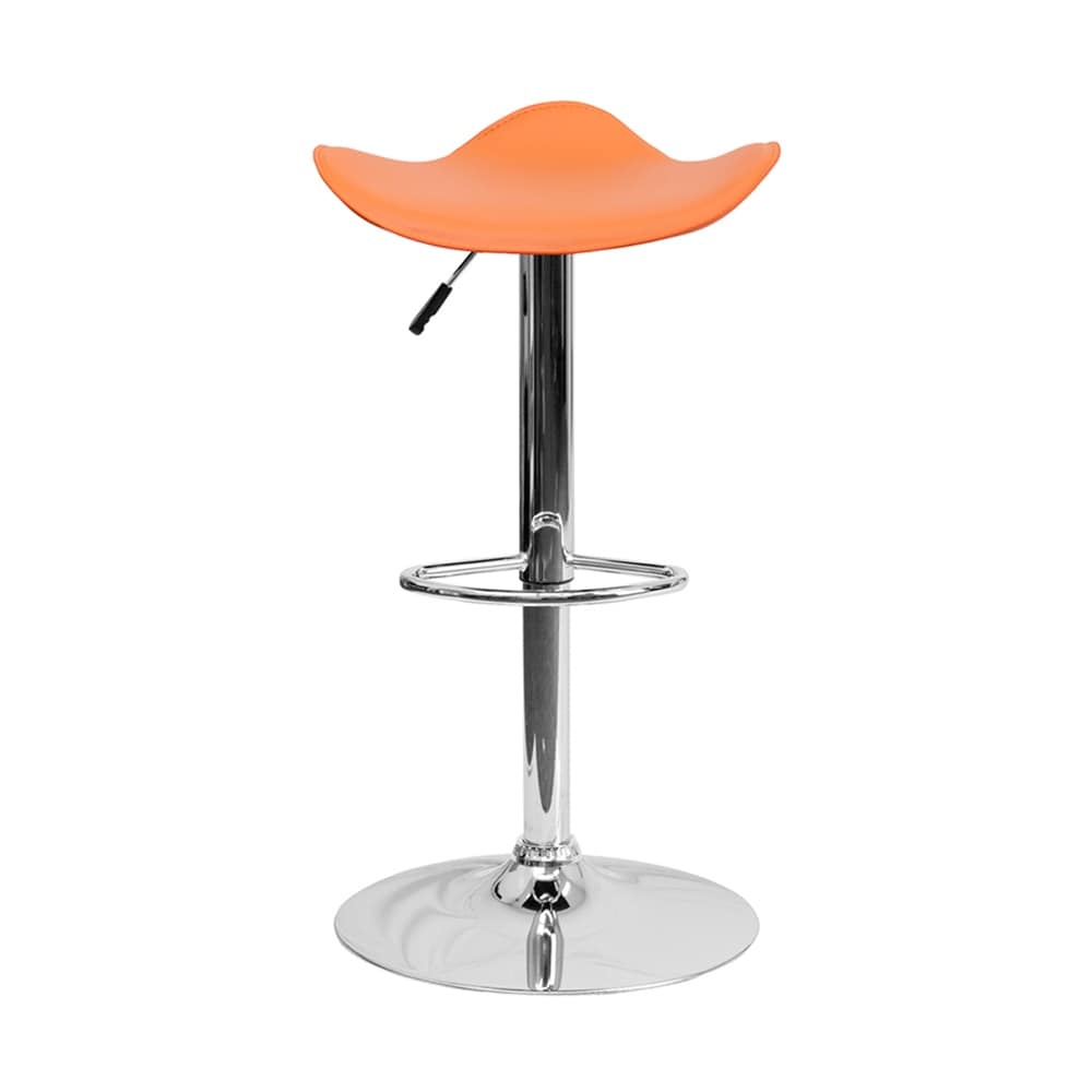 Offex Contemporary Orange Vinyl Adjustable Height Bar Stool With Chrome Base