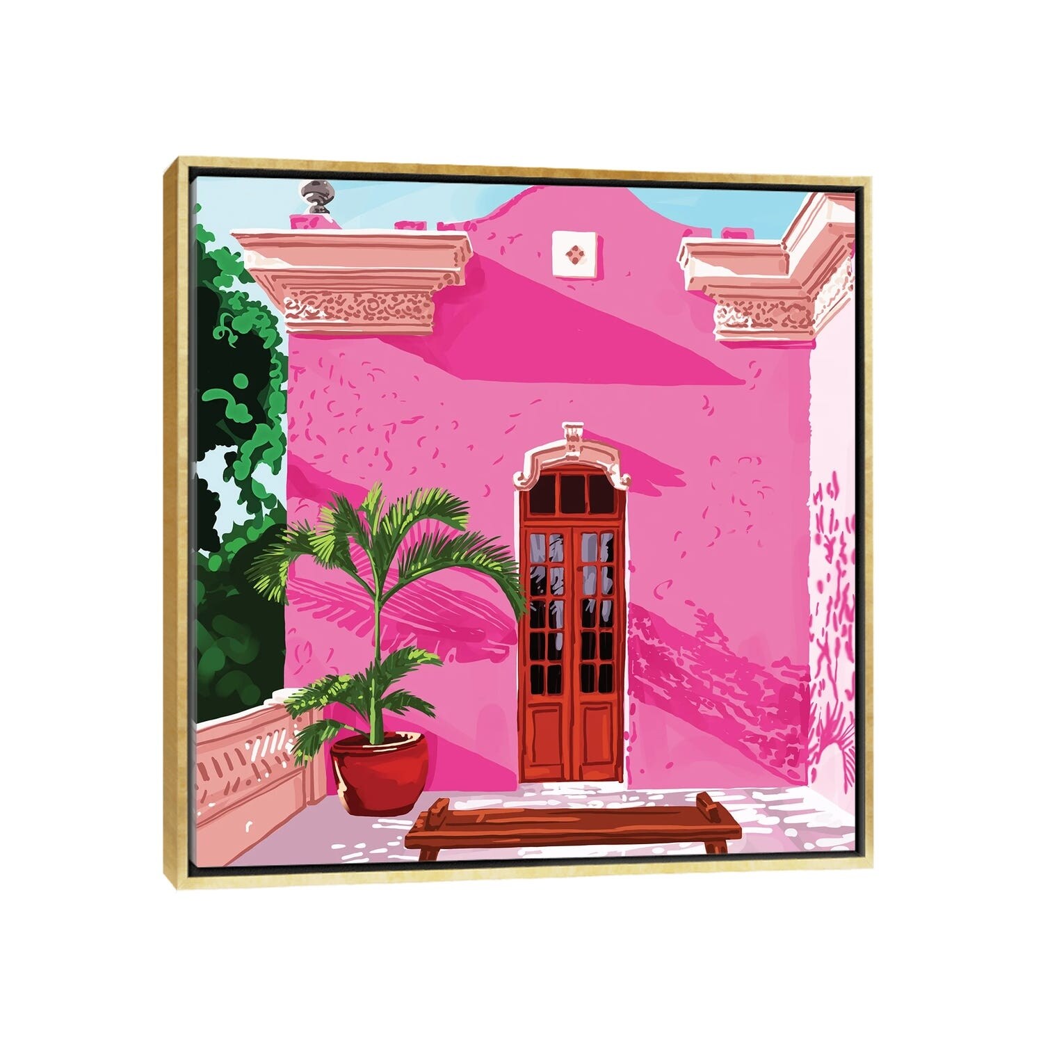 iCanvas "Pink Building, Exotic Modern Architecture, Travel Cities, Morocco, Tropical Spain" by 83 Oranges Framed Canvas Print