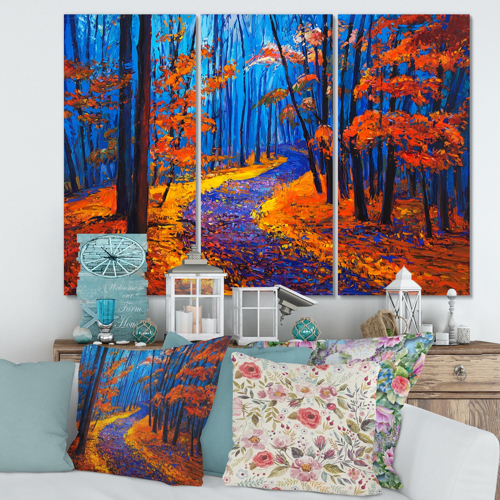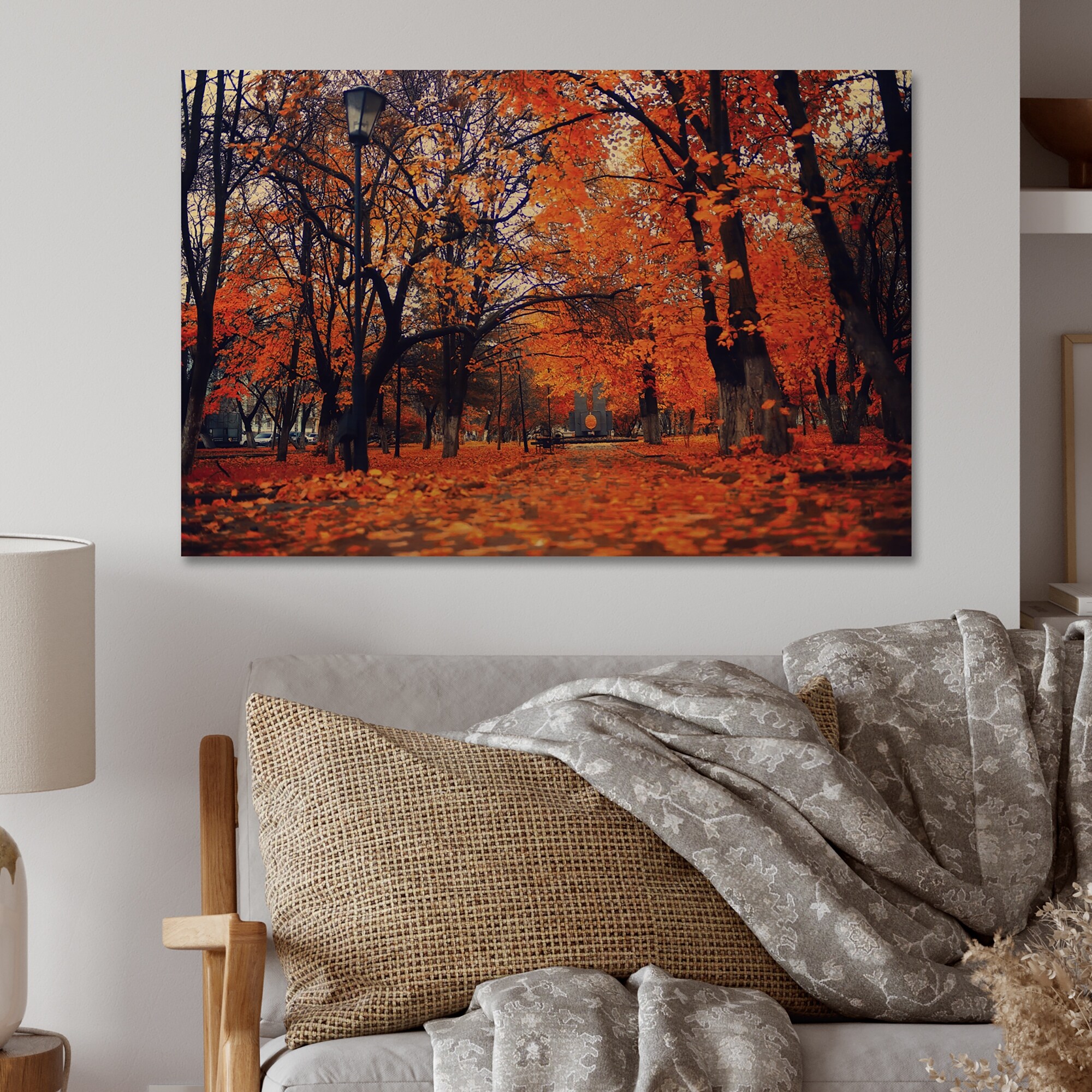 Designart 'Mystic Orange Fall Forest' Traditional Wood Wall Art Décor - Natural Pine Wood