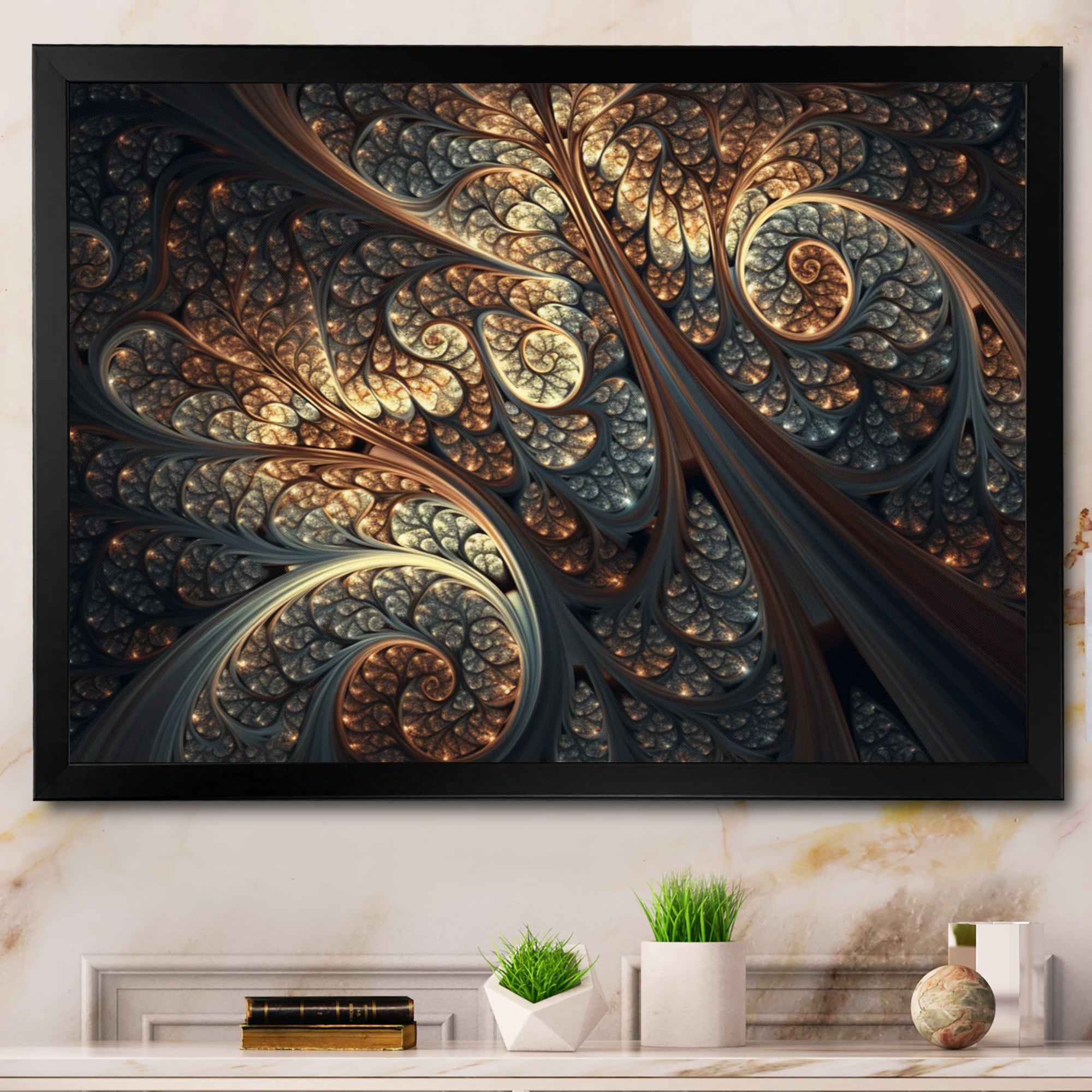 Designart "Blue And Orange Fractal Fusion Ii" Abstract Fractal Framed Canvas Print