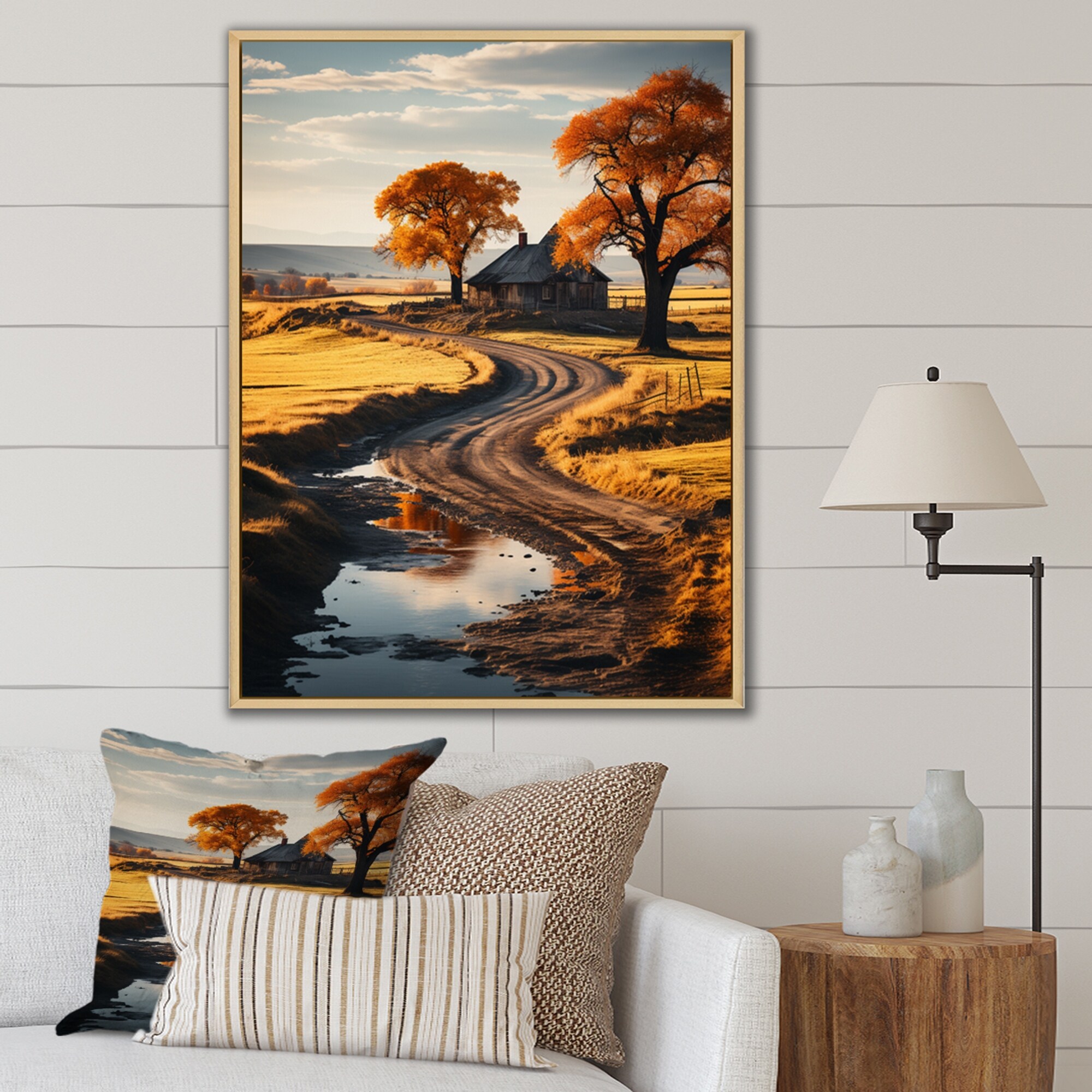 Designart "Orange Farm Autumn Landscape V" Farm Framed Wall Decor