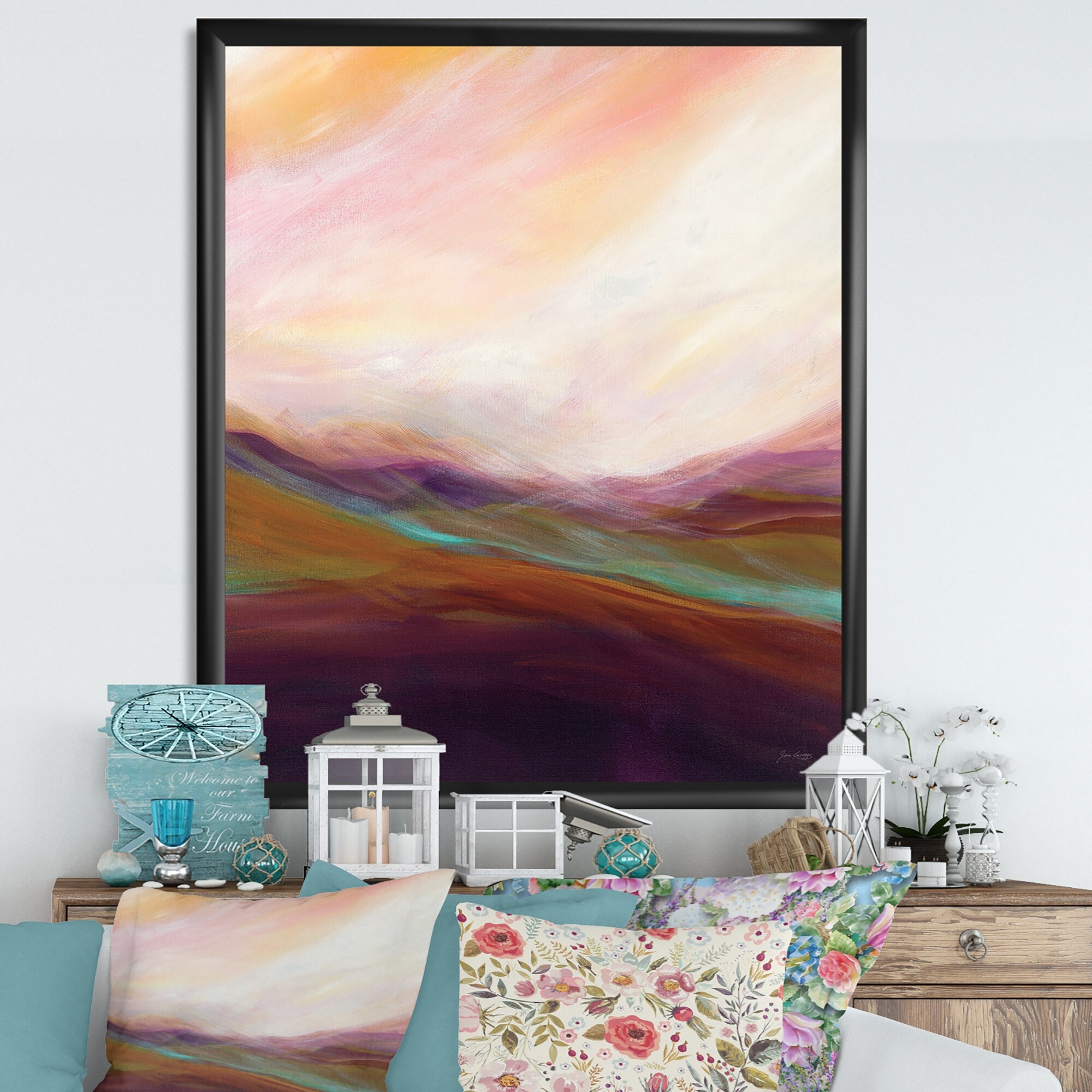 Designart "Abstract Desert Dunes Watercolor Orange Yellow" Cottage Framed Art Print