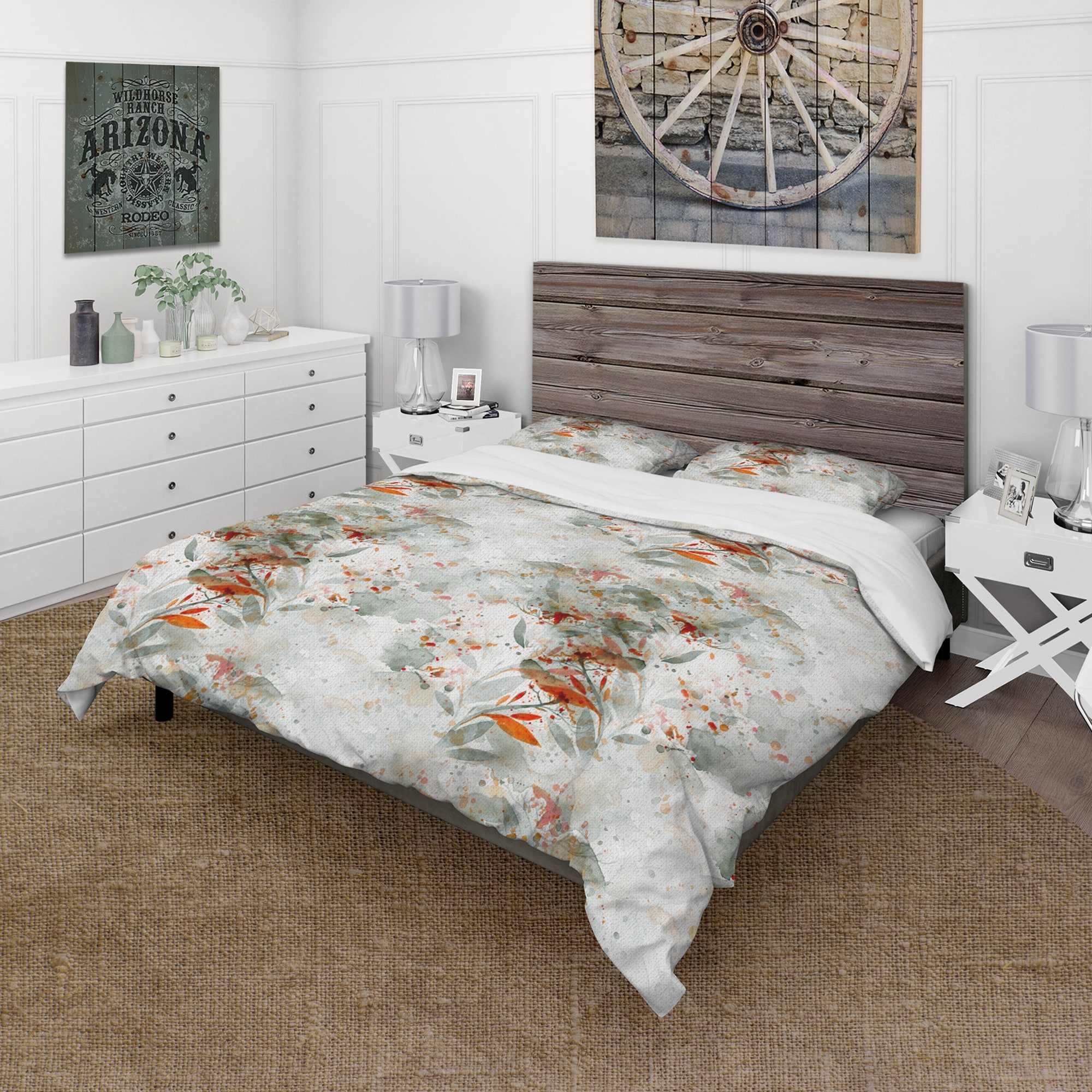 Designart 'Green and Orange Wildflowers II' Modern Duvet Cover Set
