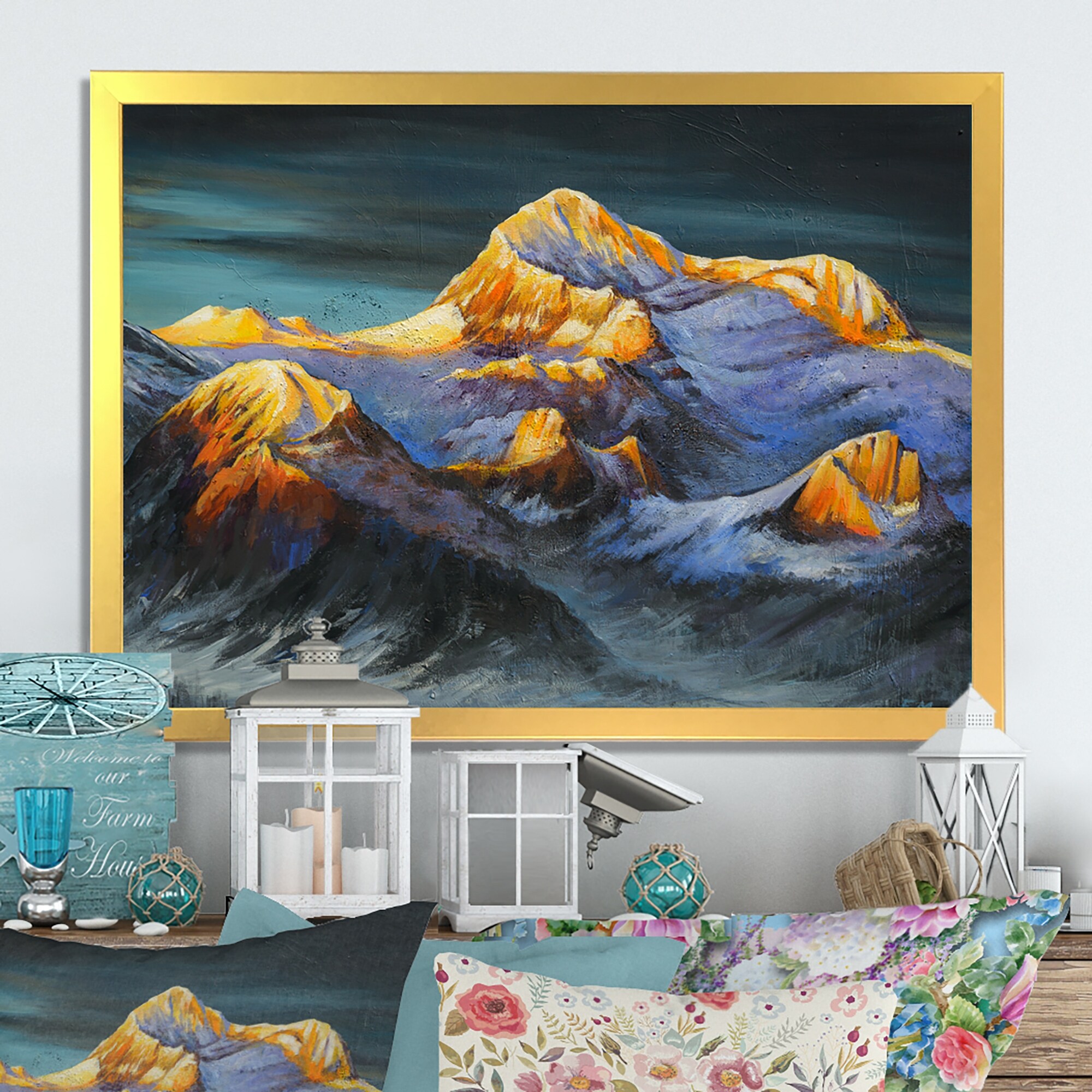 Designart "Orange And Grey Mountains" Traditional Framed Wall Art