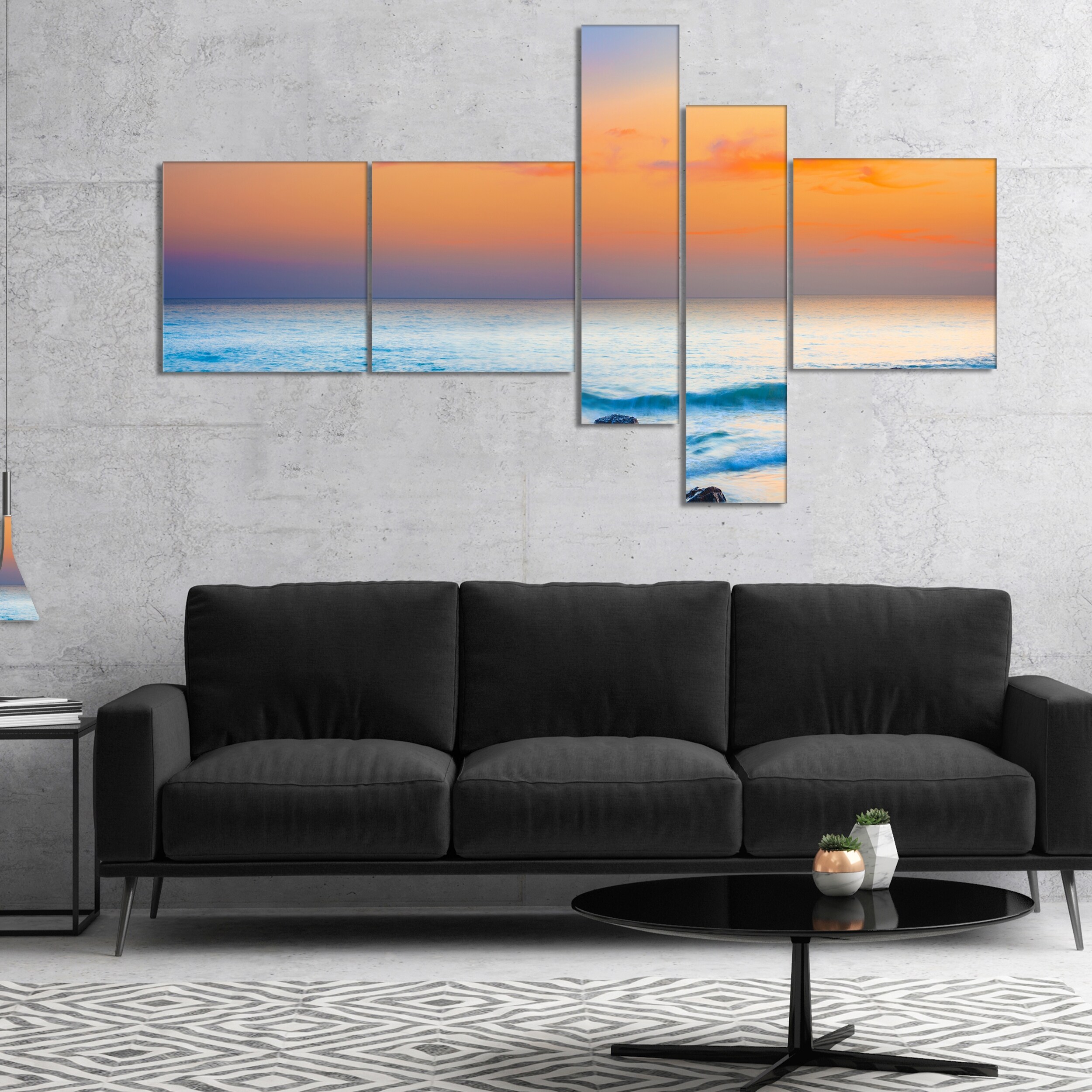 Designart "Orange Sunset Panorama" Photography Canvas Art Print
