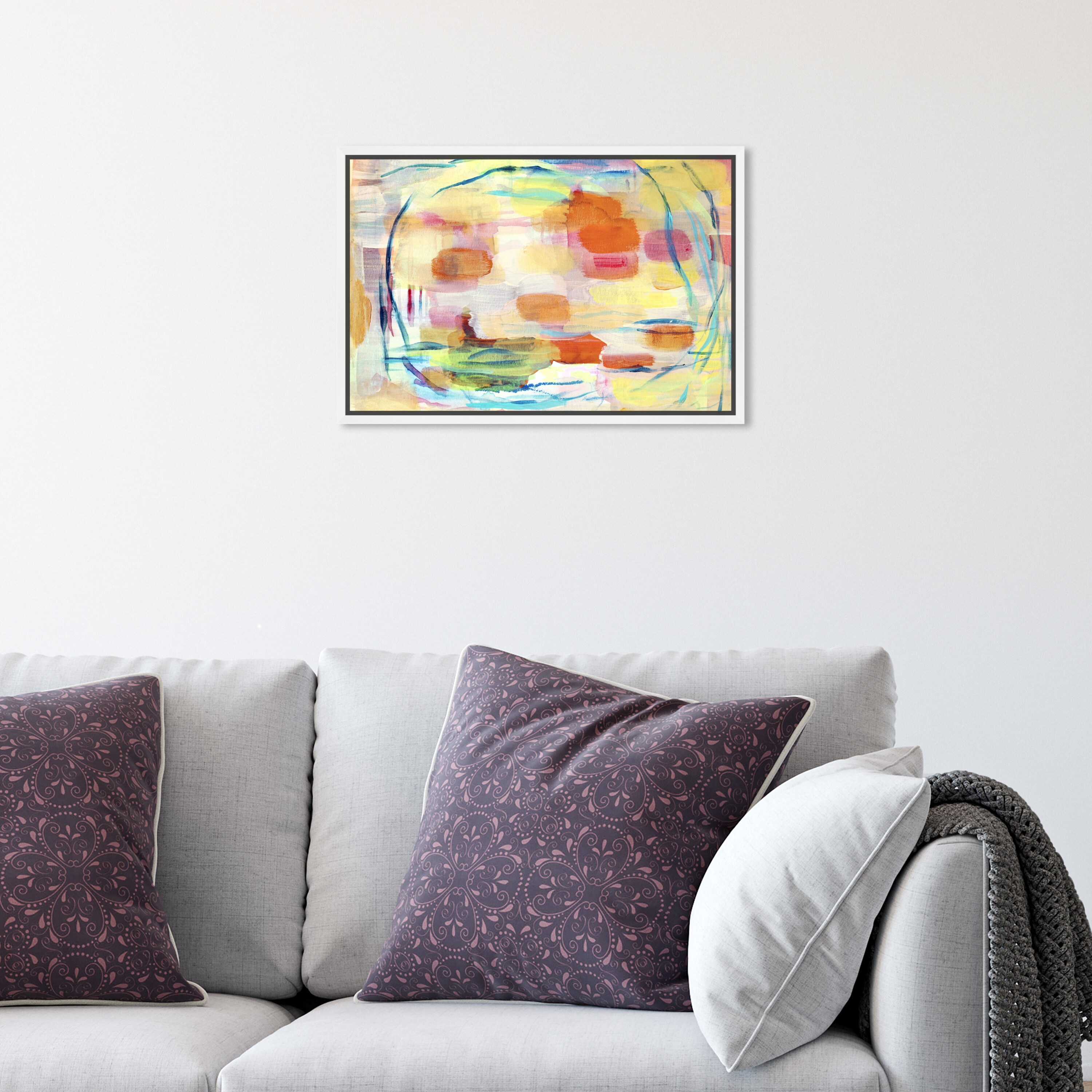 Oliver Gal 'Morning Lake Boat' Abstract Wall Art Framed Canvas Print Paint - Yellow, Orange