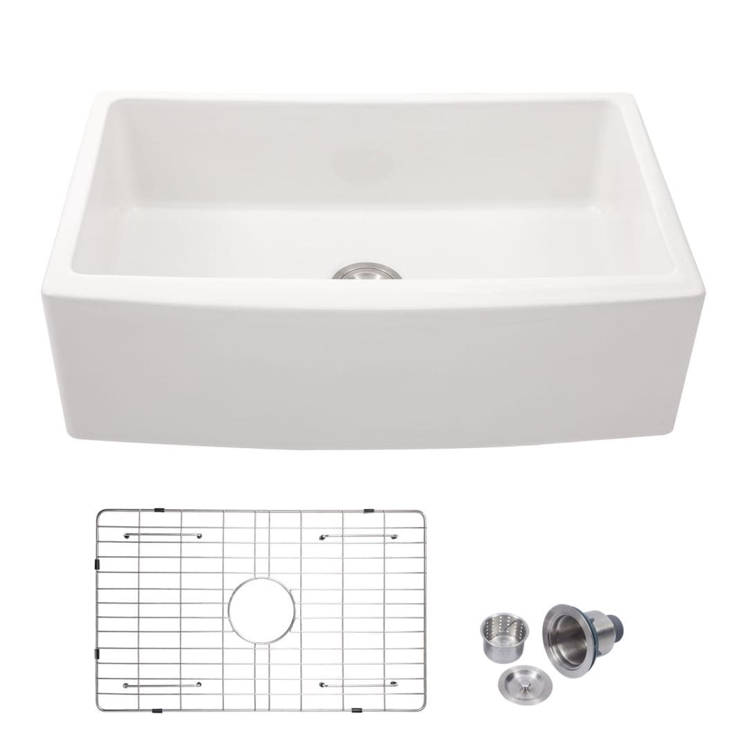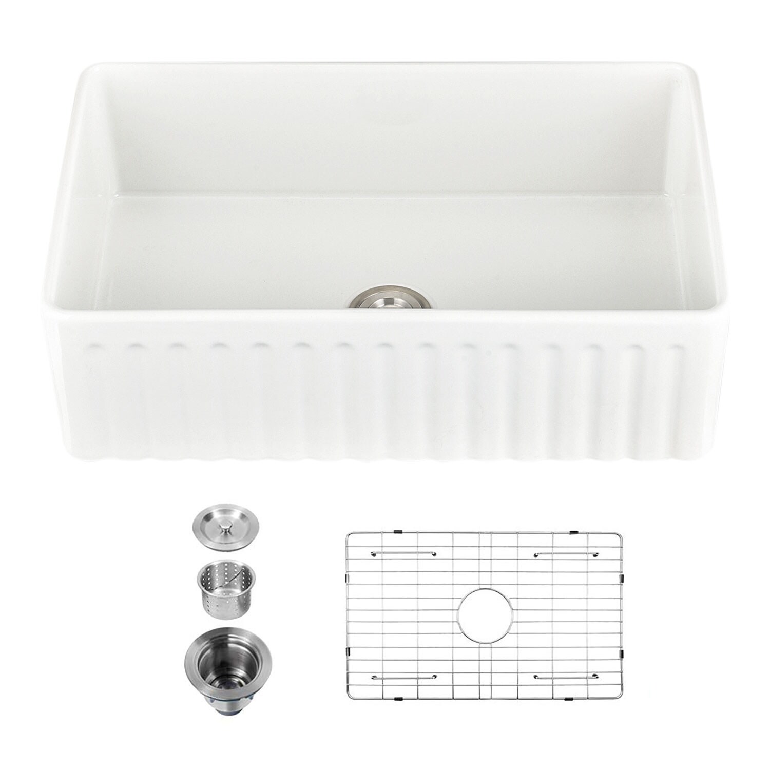 PROOX 30" W X 20" D Single Bowl Kitchen Apron-front Ceramic Porcelain Sink with Accessories - 30" W X 20" D