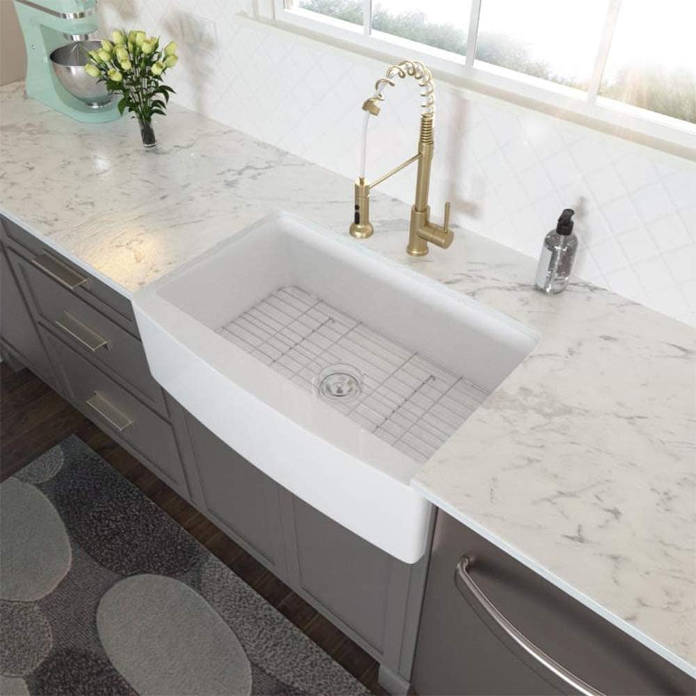 PROOX 33 in.W x 20 in. D Single Apron-Front Farmhouse Kitchen Sink w/ Protective Bottom Grid and Strainer - 33" W X 20" D