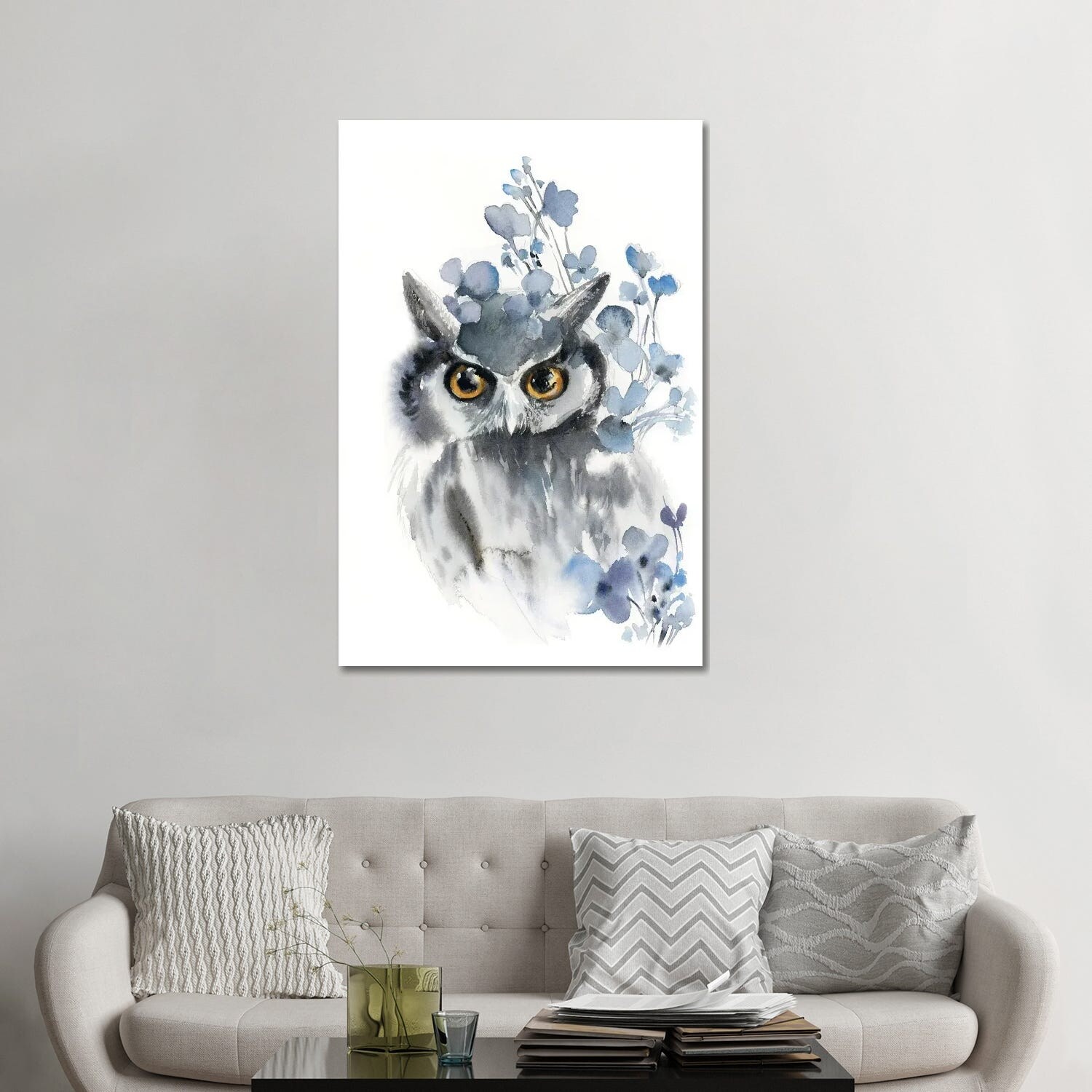 iCanvas "Owl And Flowers on Grey And Blue" by Sophie Rodionov Canvas Print