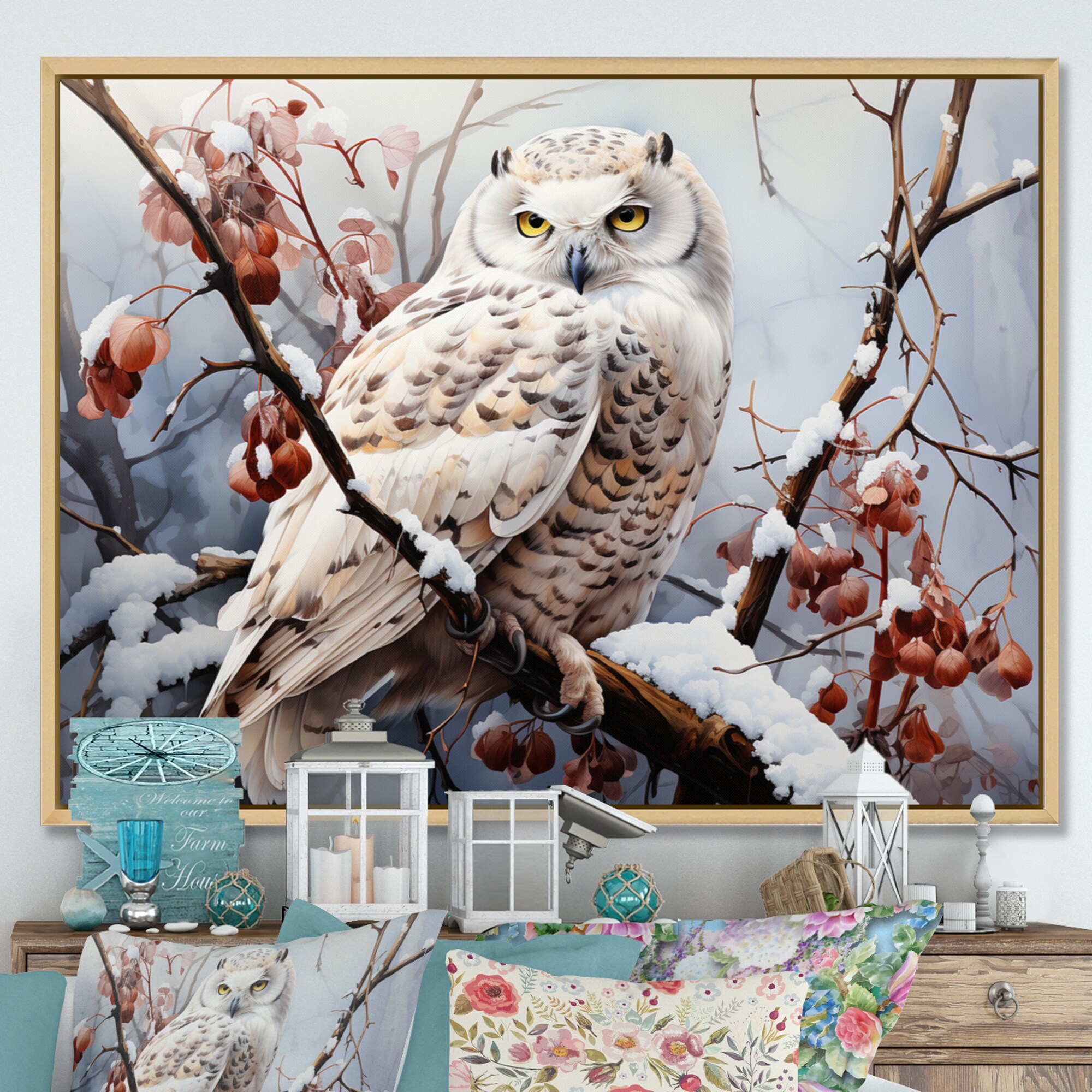 Designart "Snowy Owl Winter III" Winter Landscape Framed Canvas Wall Art
