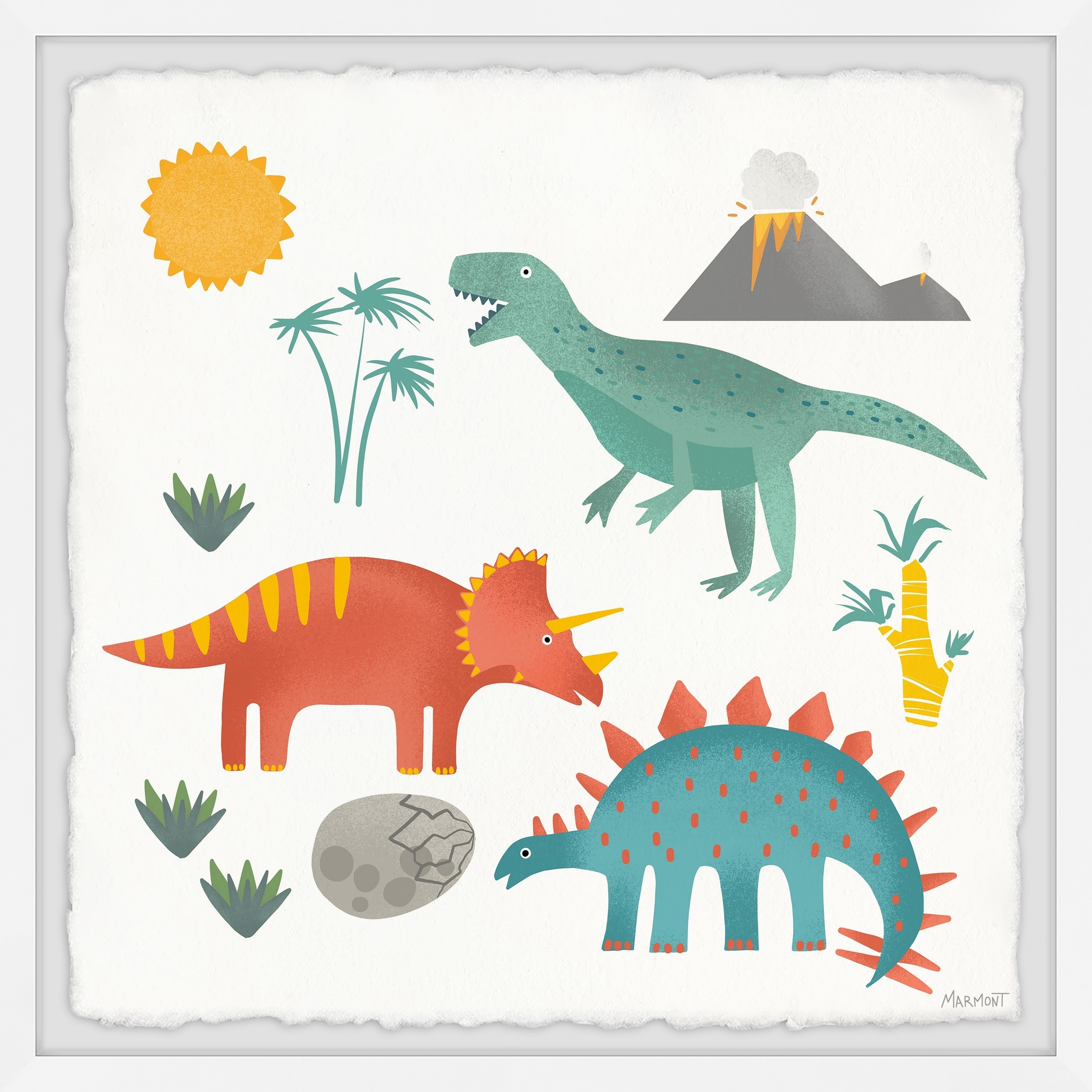 Marmont Hill - Handmade Dinosaur 1 Painting Print on White Wood