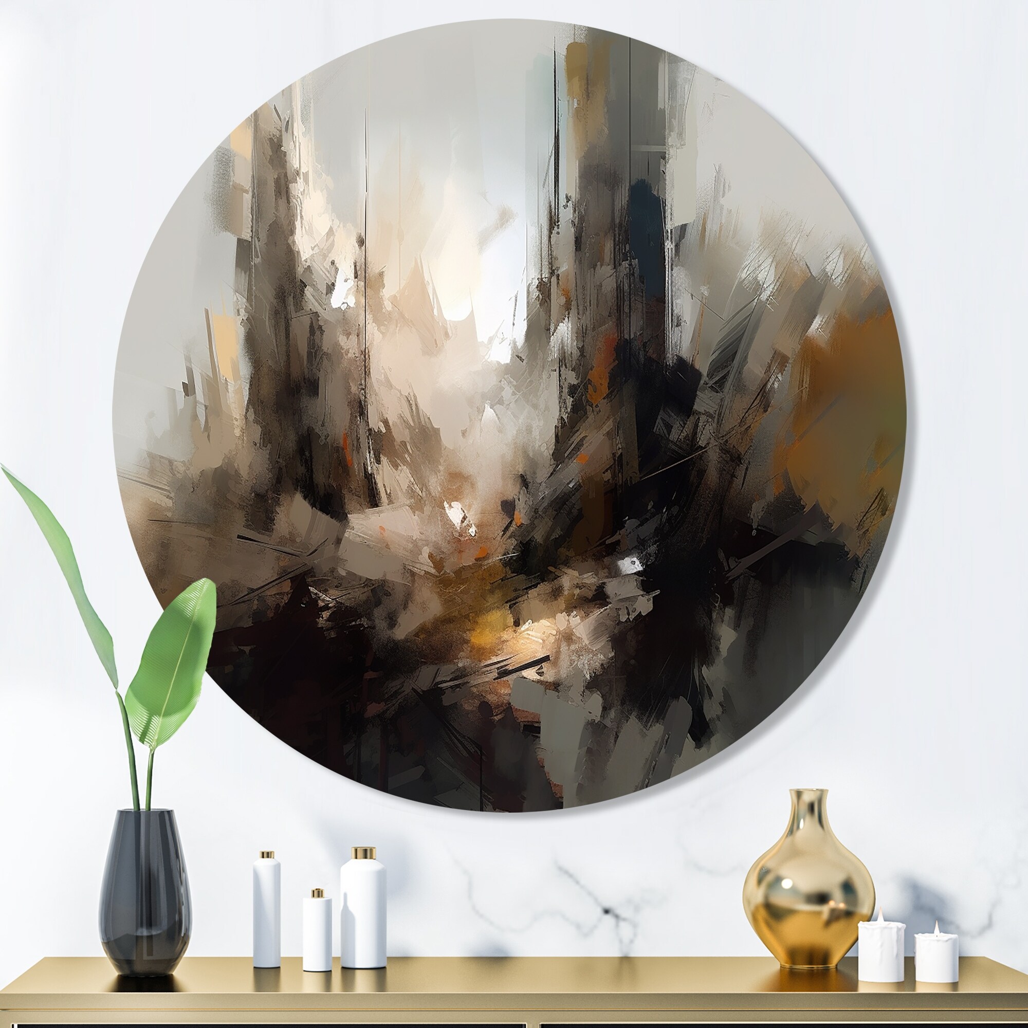 Designart "Abstract Delicate Brushstroke Painting IV" Abstract Metal Round Wall Art