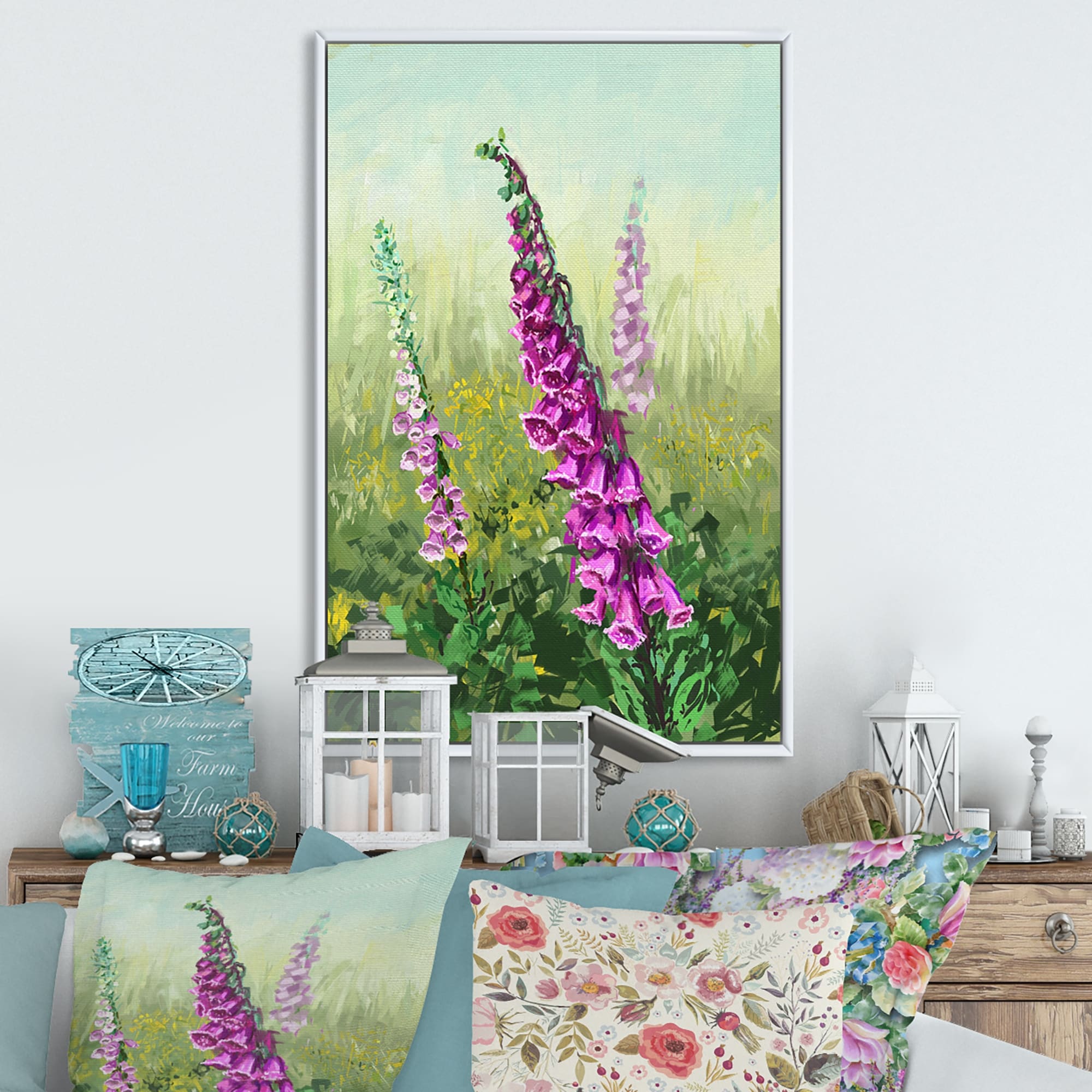 Designart "Purple Wildflowers Painting" Traditional Framed Canvas Wall Art