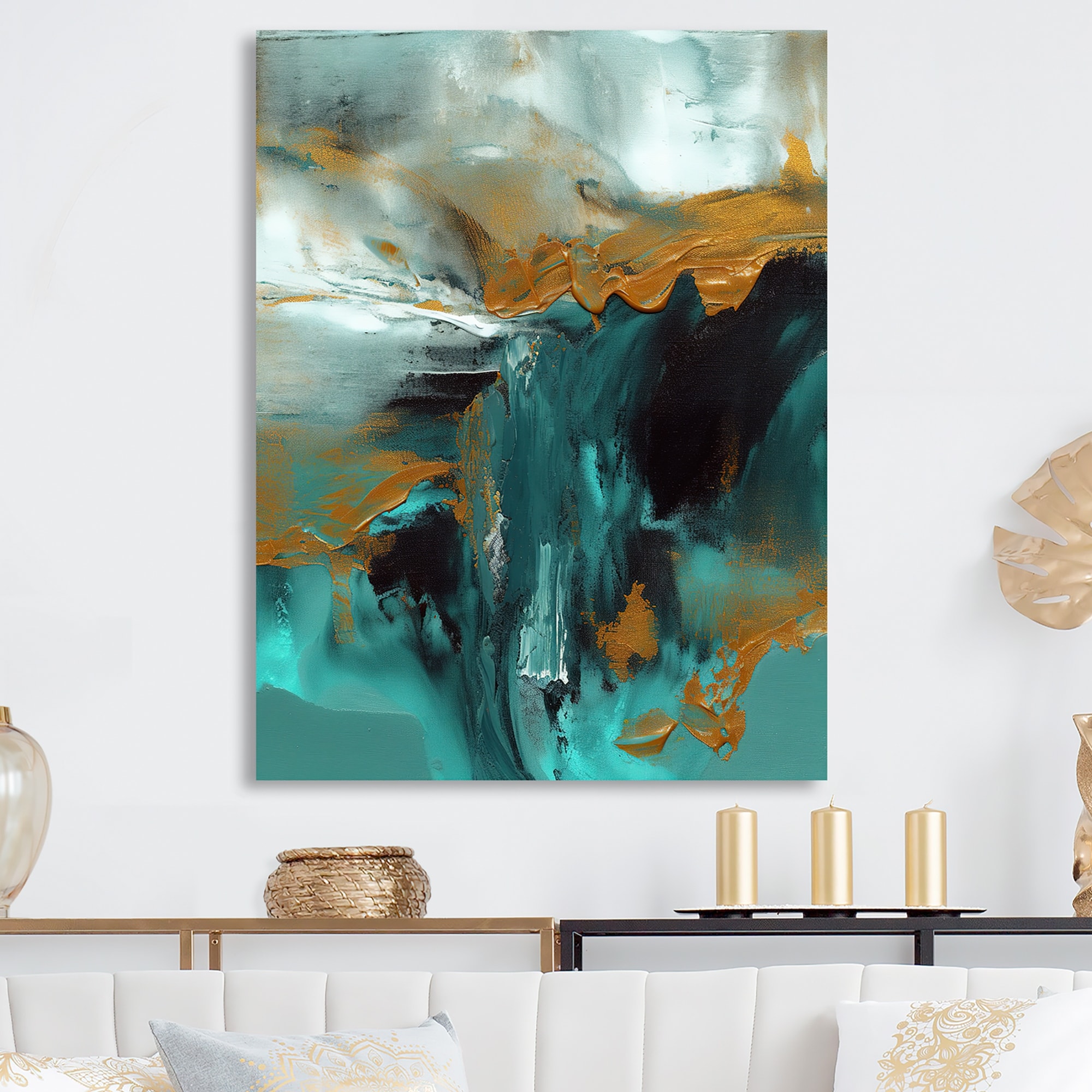 Designart "Teal Balance III" Abstract Painting Metal Wall Art