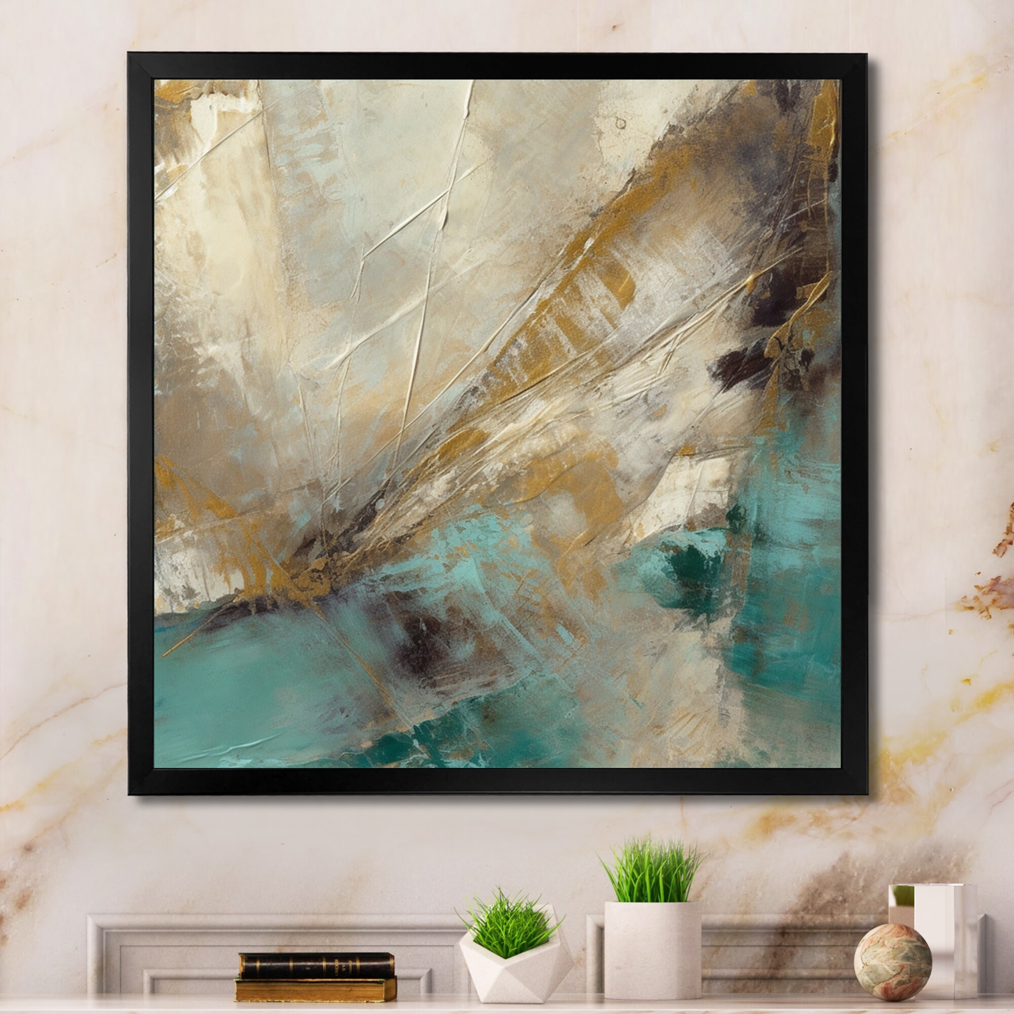 Designart "Beige And Green Forms in Painting I" Abstract Painting Framed Wall Art Prints