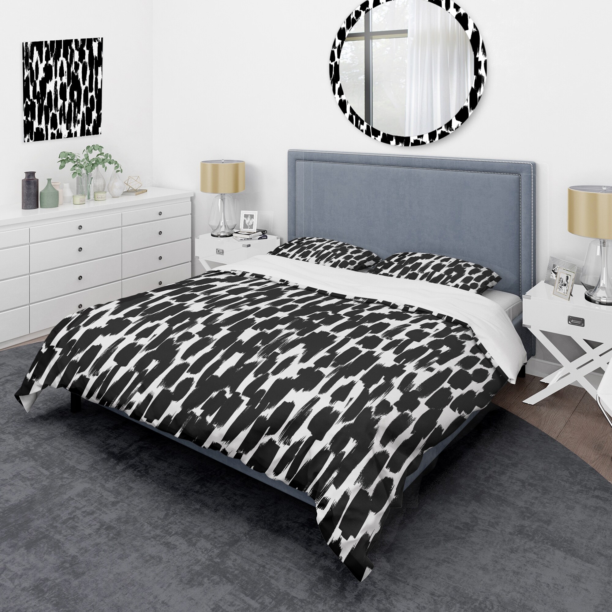 Designart 'Black Pattern With Paint Strokes III' Modern Duvet Cover Set