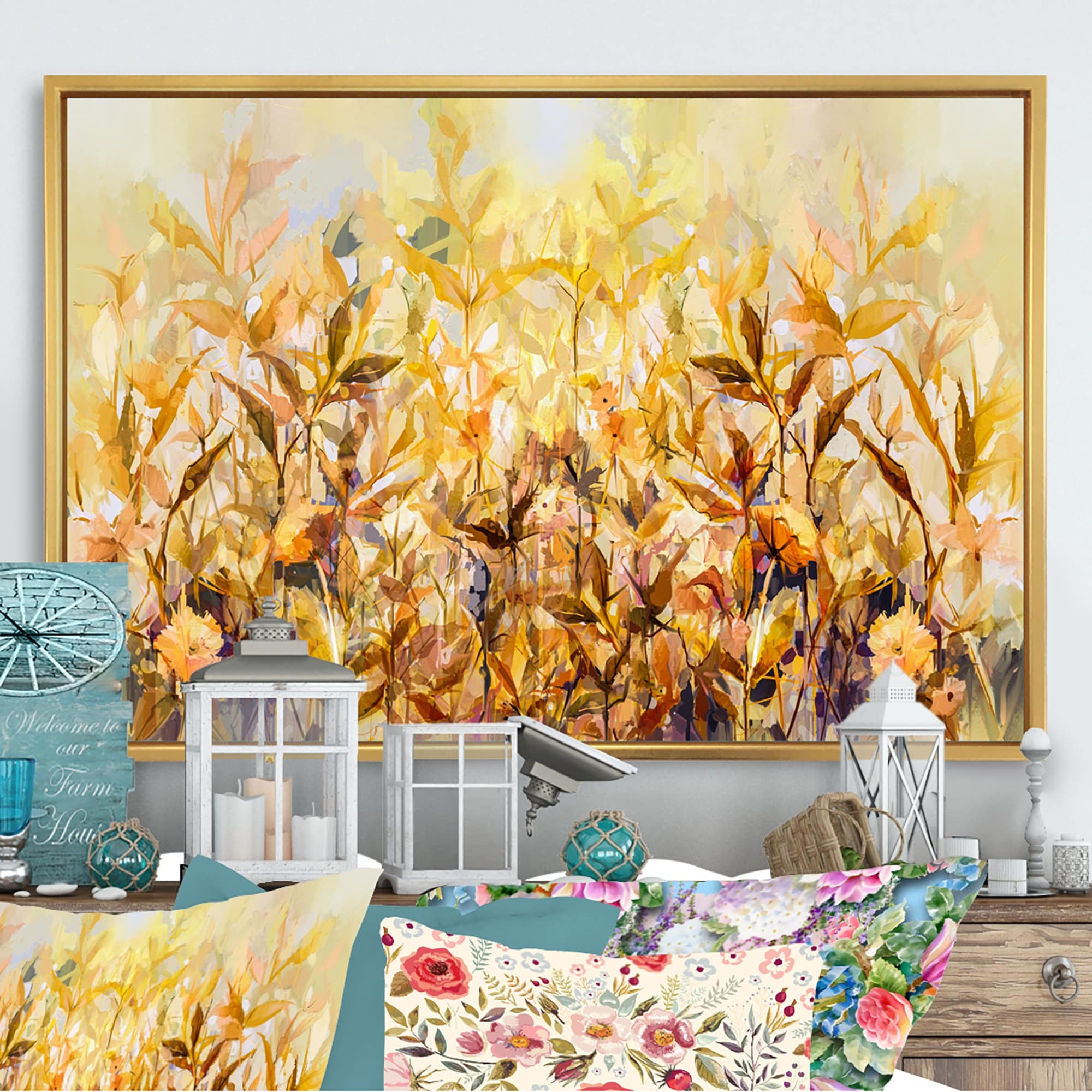 Designart "Botanical Brown Painted Flowers II" Traditional Framed Canvas Wall Decor
