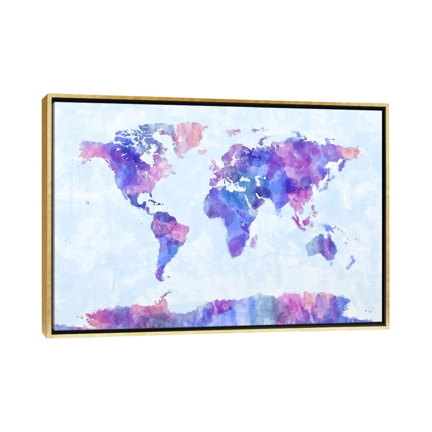 iCanvas "Map of the World Paint Splashes V" by Michael Tompsett Framed