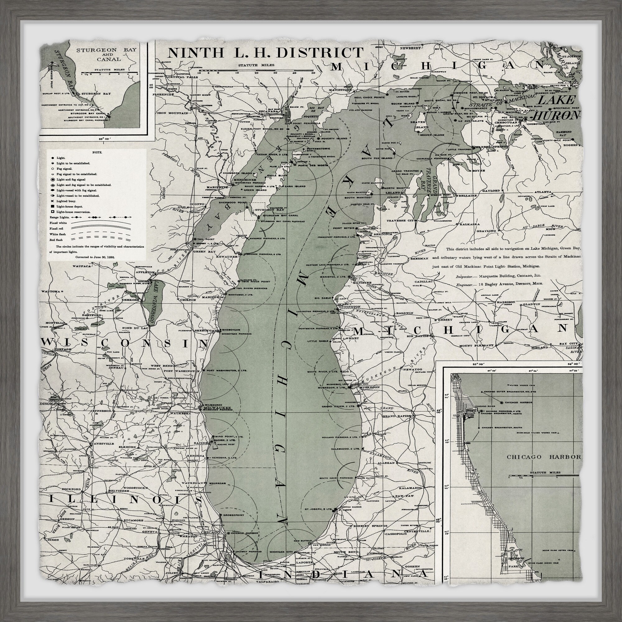 'Ninth L.H. District Vintage Map' Framed Painting Print
