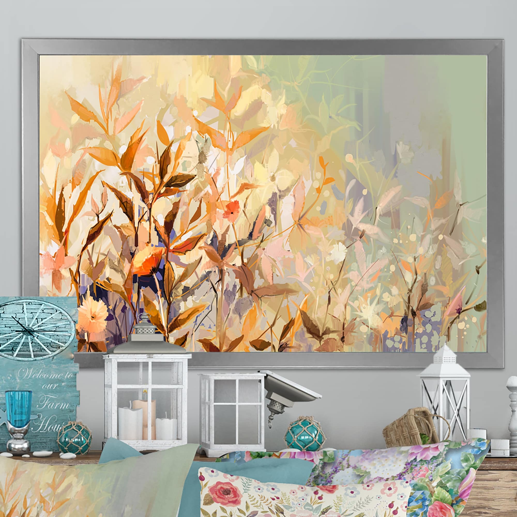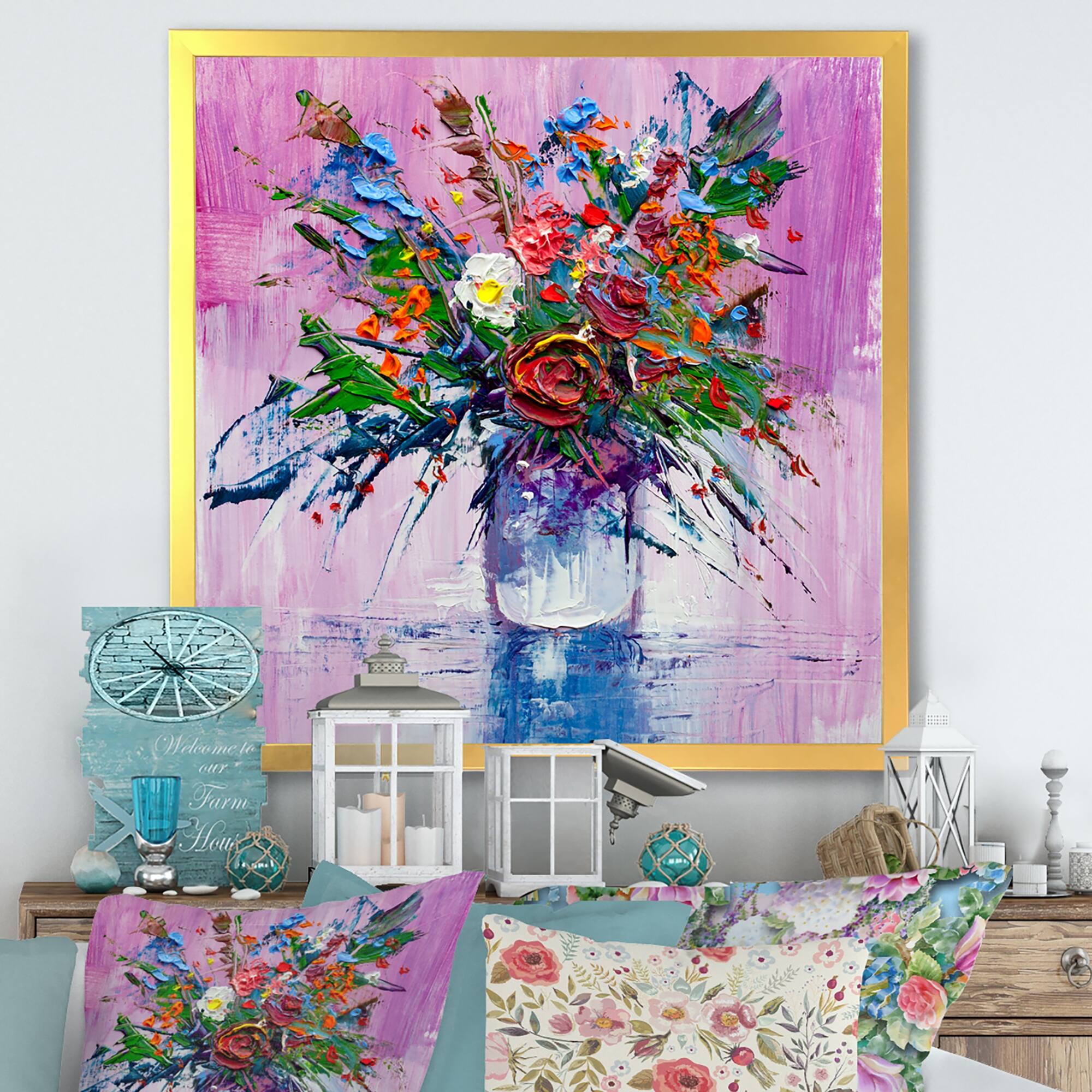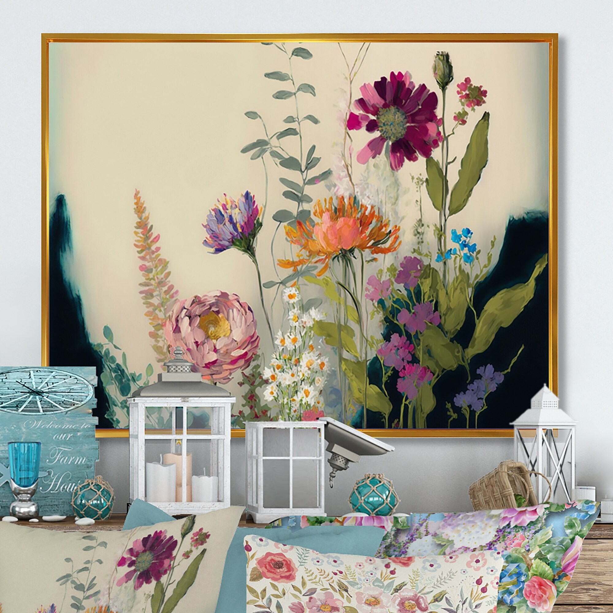 Designart "Painted Blossoming Wildflowers I" Floral Bouquet Framed Canvas Wall Art Print