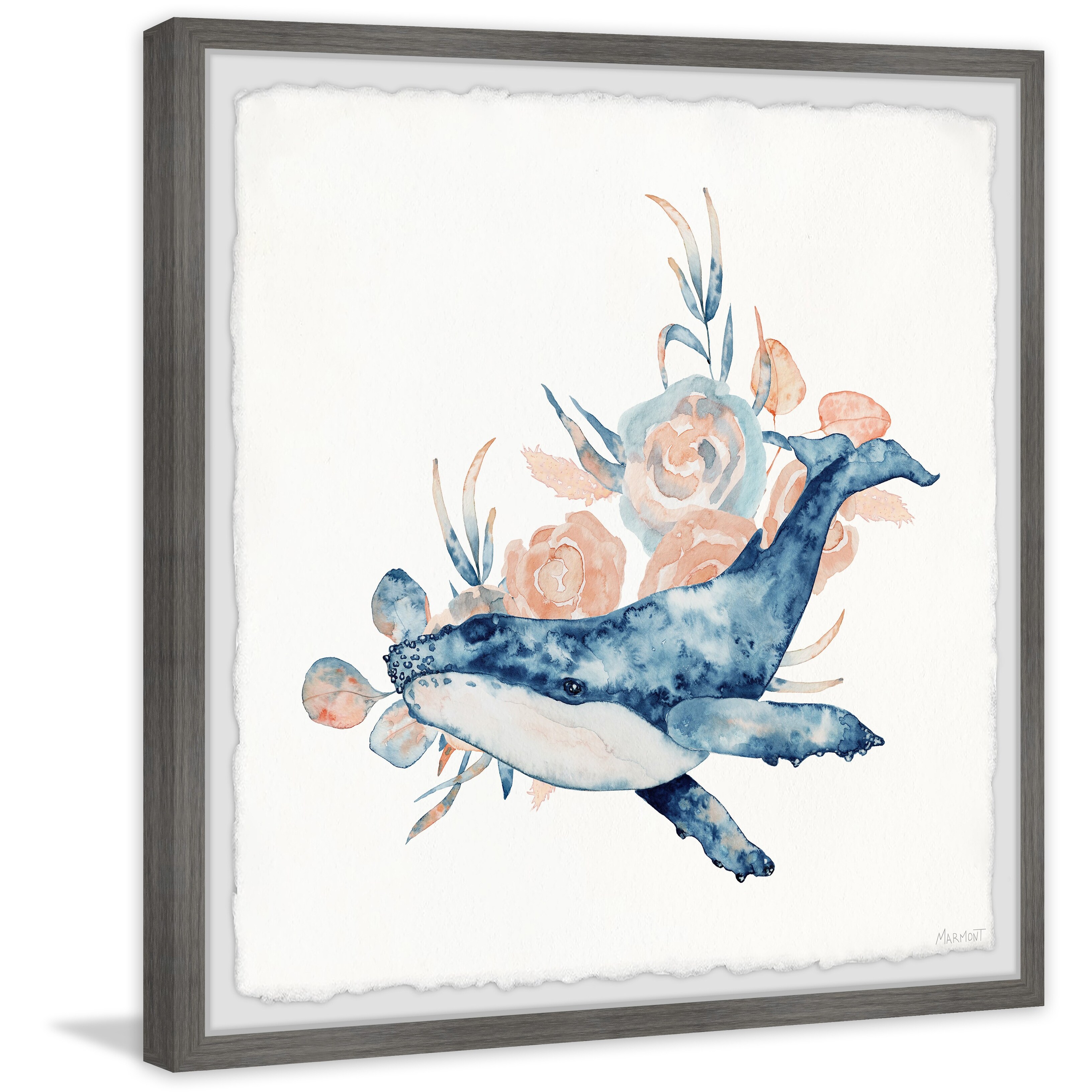 'Whale and Flowers' Framed Painting Print