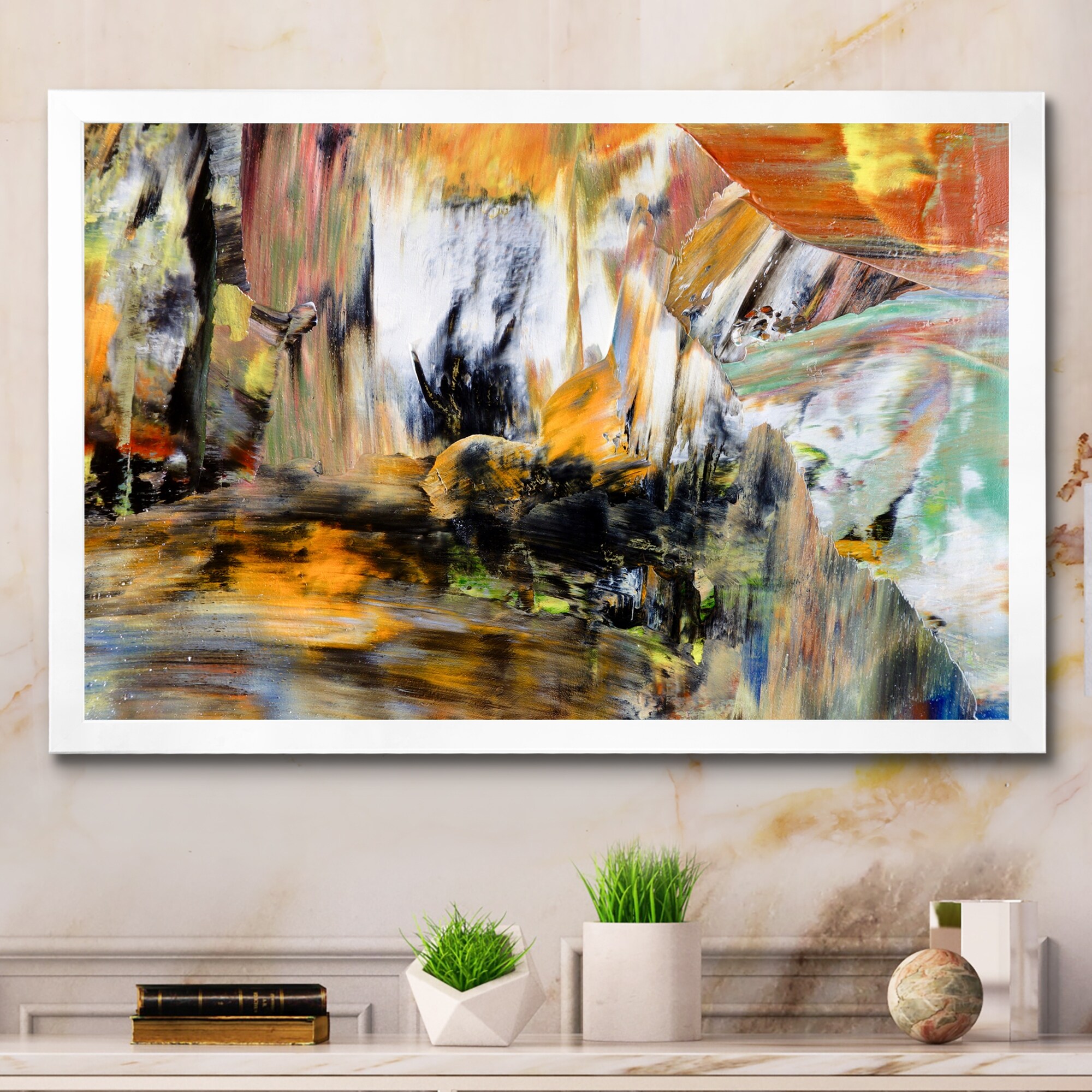 Designart "Colorful Abstract Painting Strokes III" Modern Framed Wall Decor