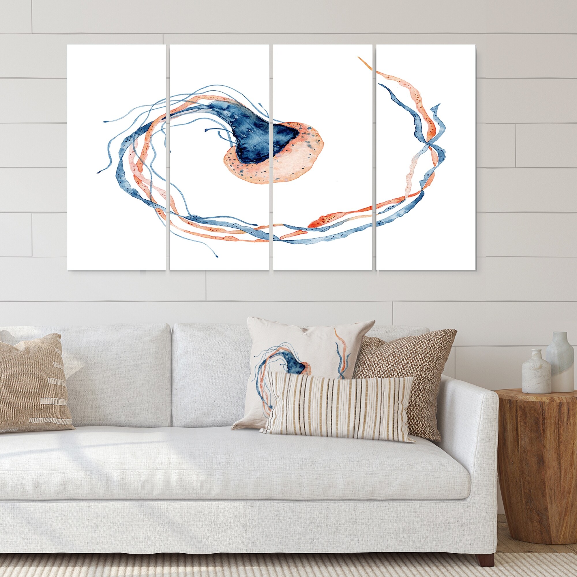 Designart "Painted Medusa on White I" Nautical & Coastal Canvas Wall Art Print - 48x28 - 4 Panels