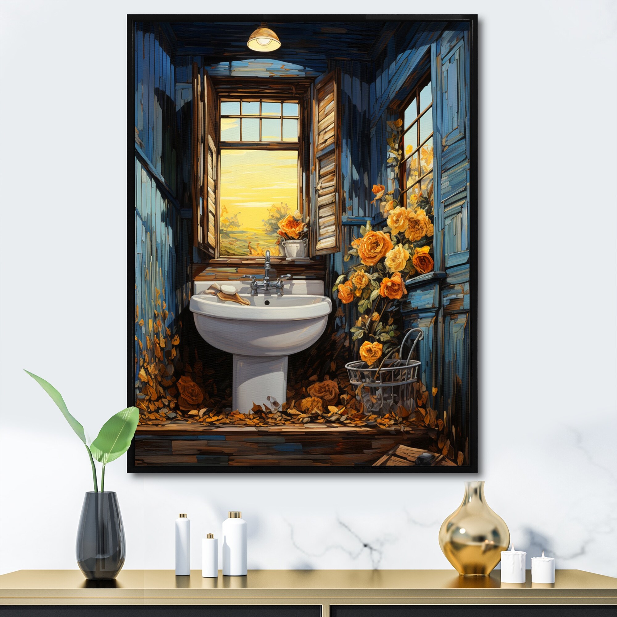Designart "Bathroom Teal Painting" Bathroom Framed Canvas Prints