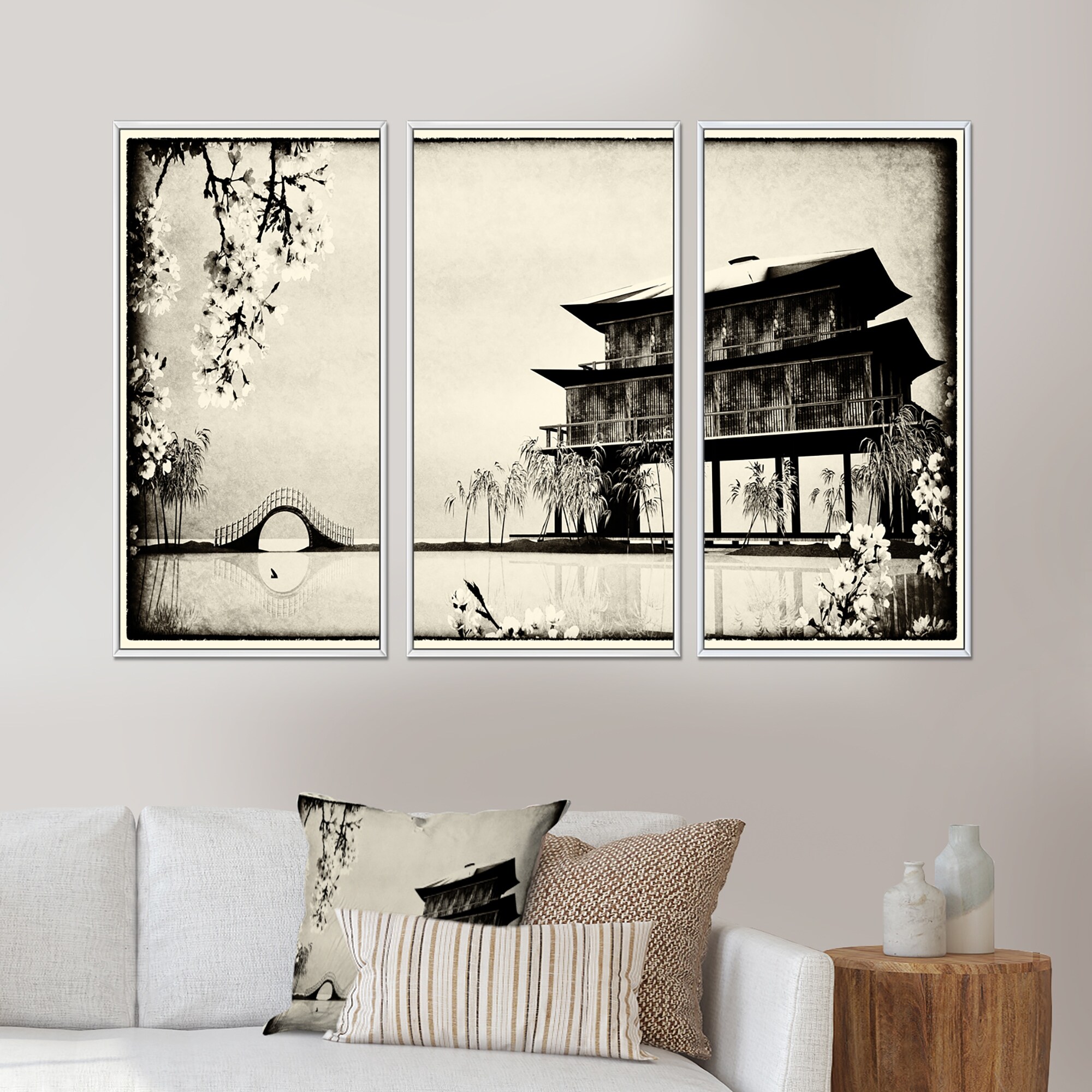 Designart "Chinese Ink Painting" Landscape Framed Artwork Set of 3 - 4 Colors of Frames