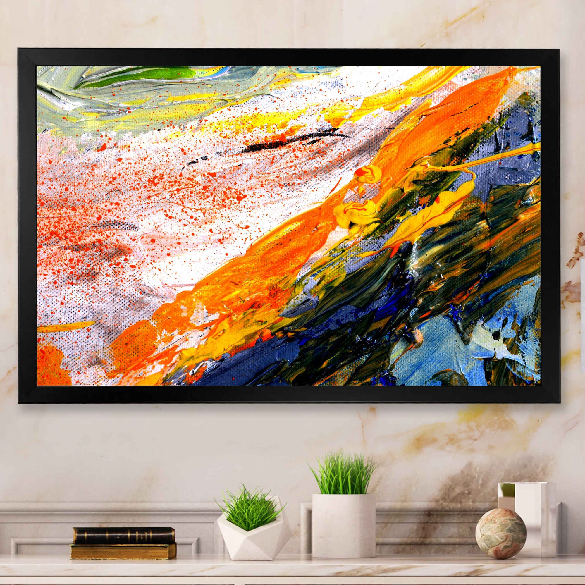 Designart "Mix Color Stroke Liquid Paint" Modern Framed Wall Art