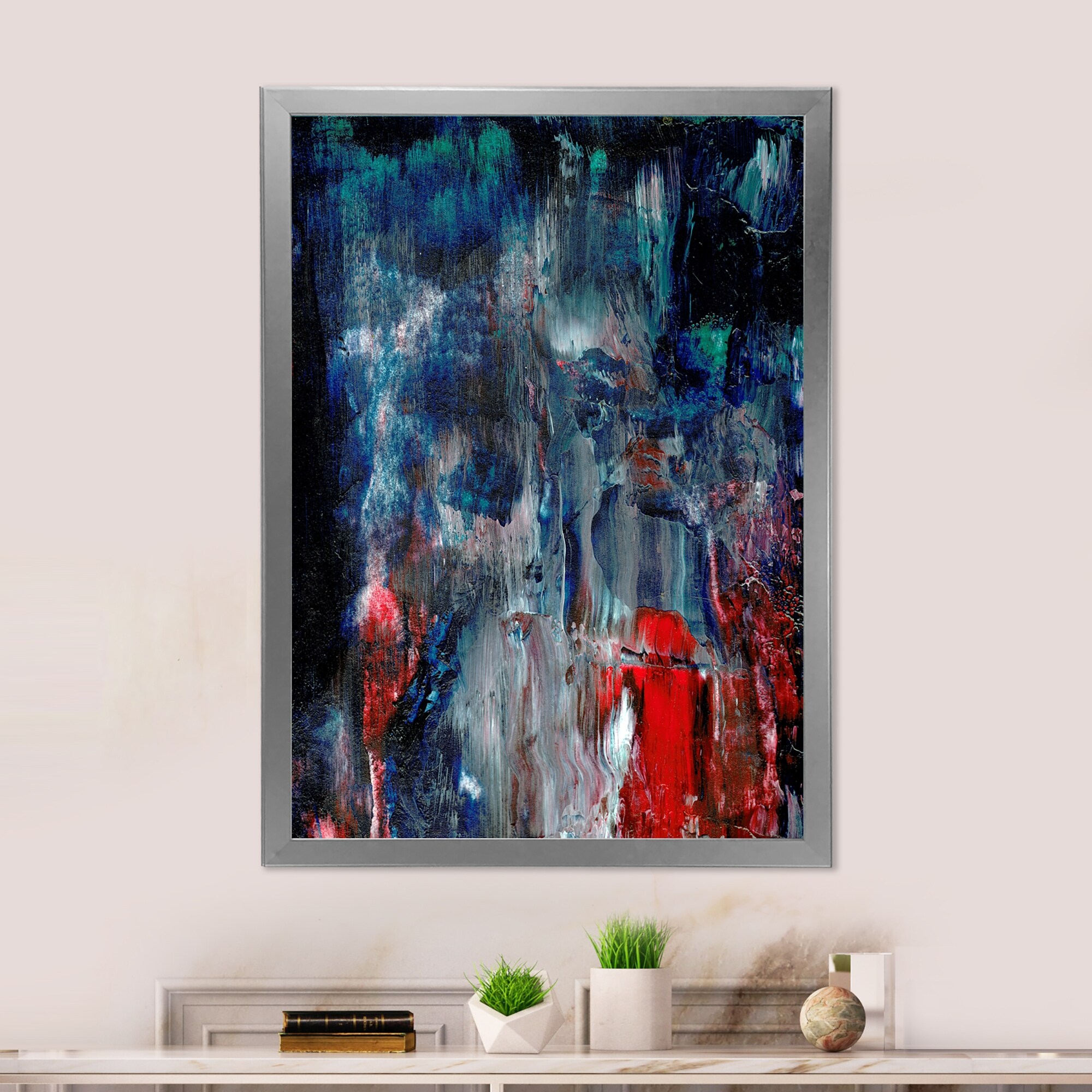 Designart "Paint Strokes in Shade of Blue" Modern Framed Wall Decor