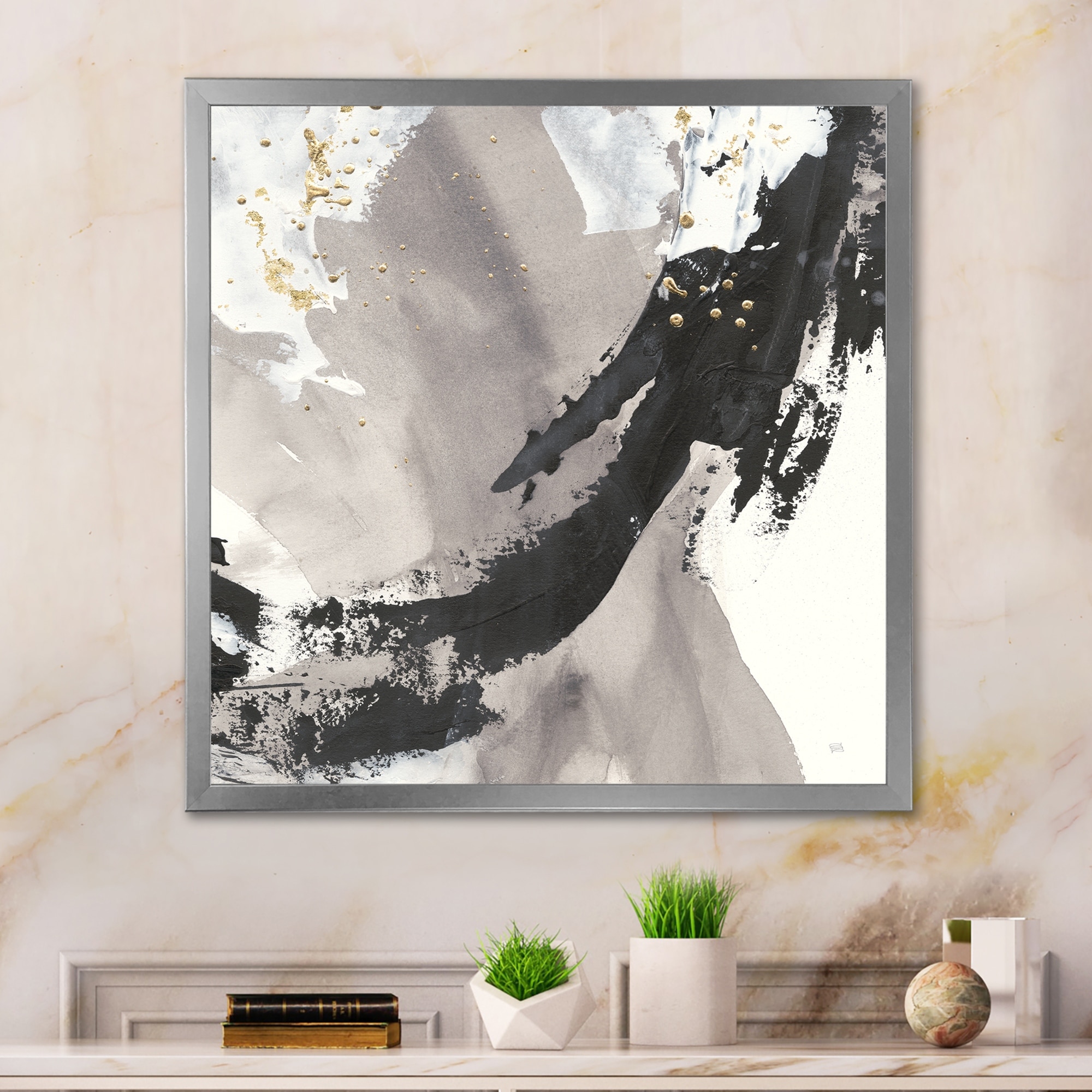 Oliver Gal 'Gray Faded' Abstract Wall Art Framed Canvas Print Paint - Black, Gold