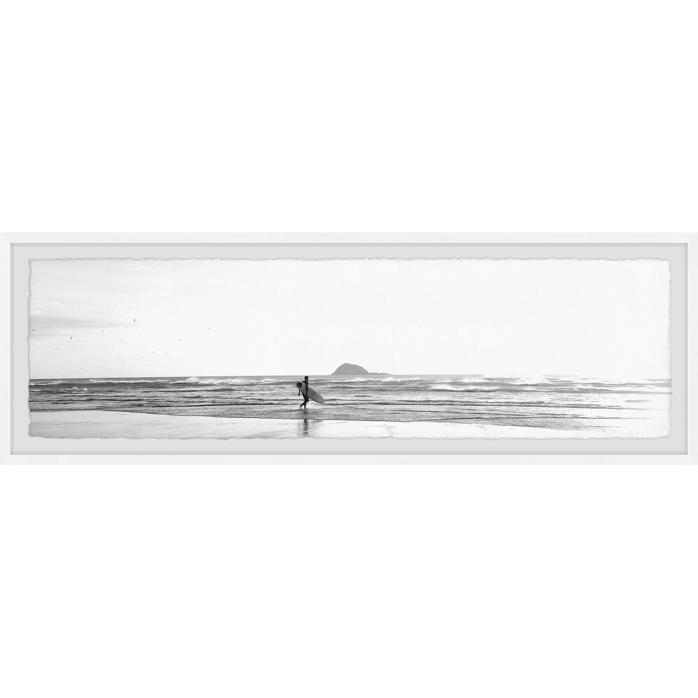 'Foggy Beach Surfing' Framed Painting Print