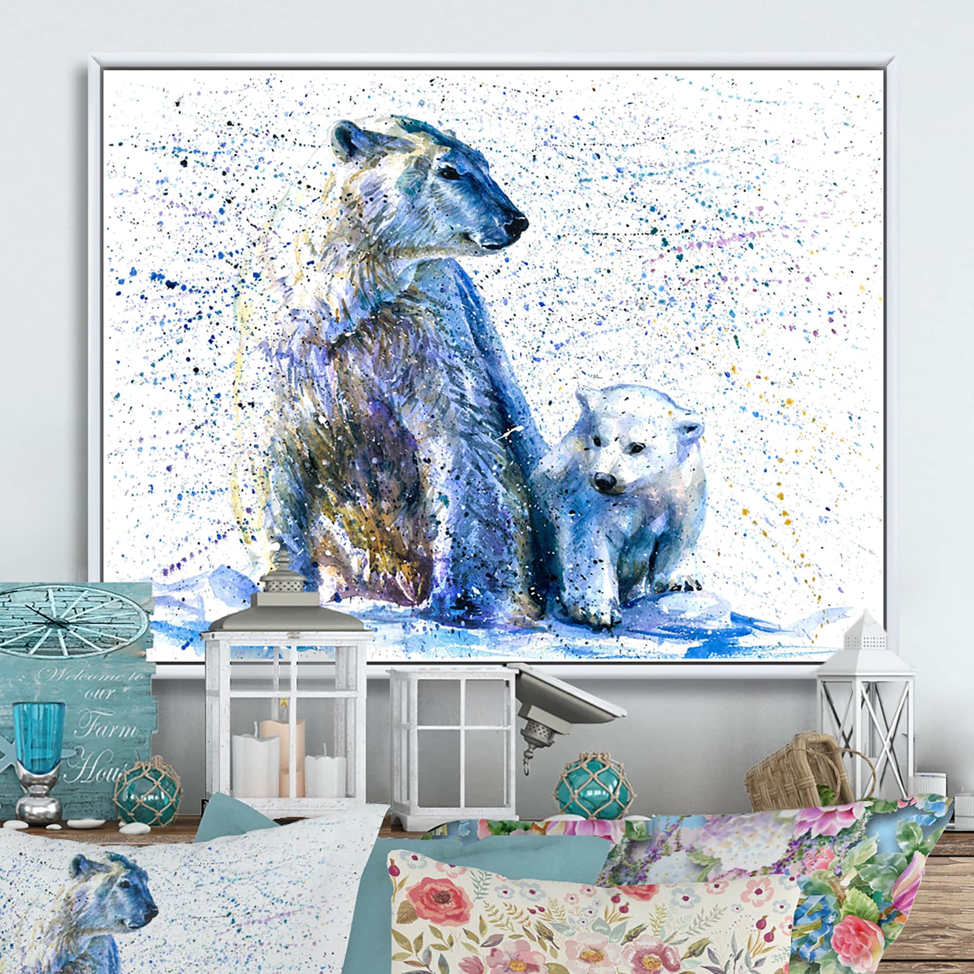 Designart "Wildlife Polar Bears Painting" Traditional Framed Canvas Wall Art