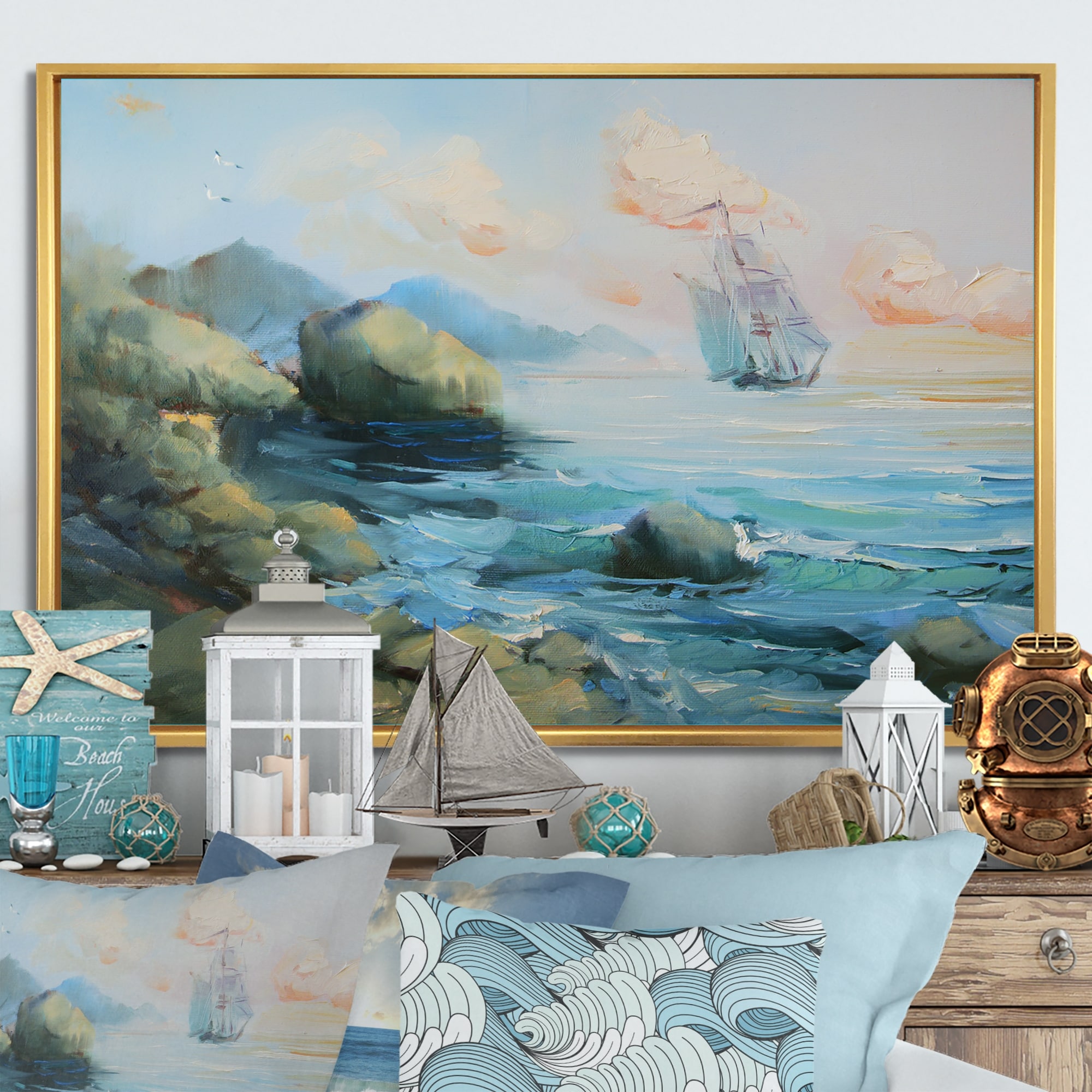 Designart "Italy Coast Sea Painting" Nautical & Coastal Framed Canvas artwork