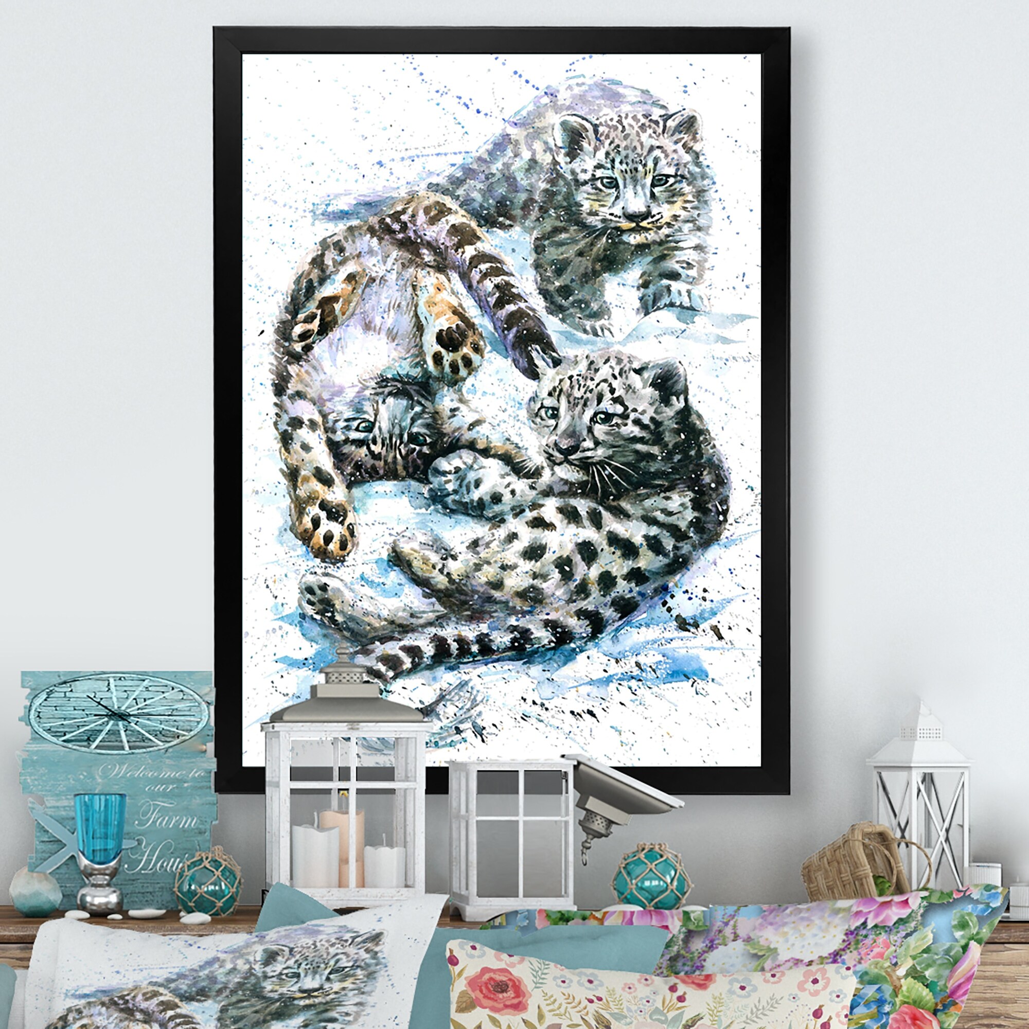 Designart "Little Snow Leopards Painting" Traditional Framed Wall Art