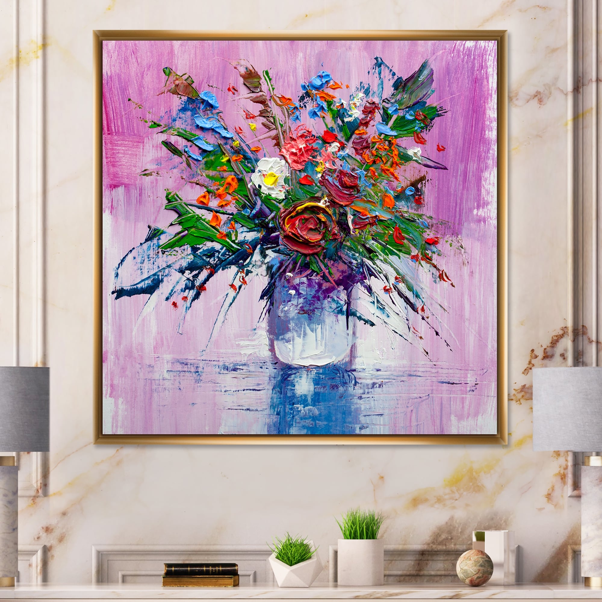 Designart "Abstract Pink Flowers Painting" Traditional Framed Canvas Wall Art