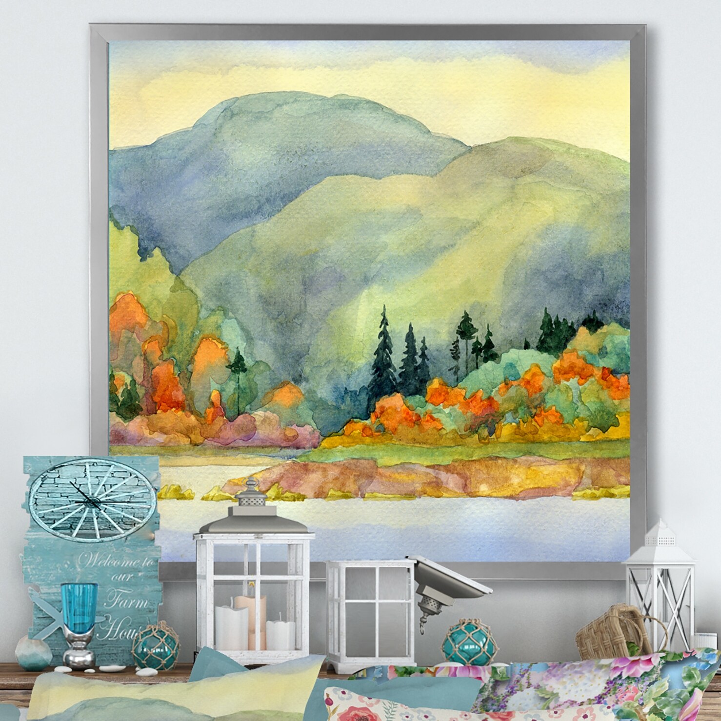 Designart "Autumn Lake Painting" Traditional Framed artwork