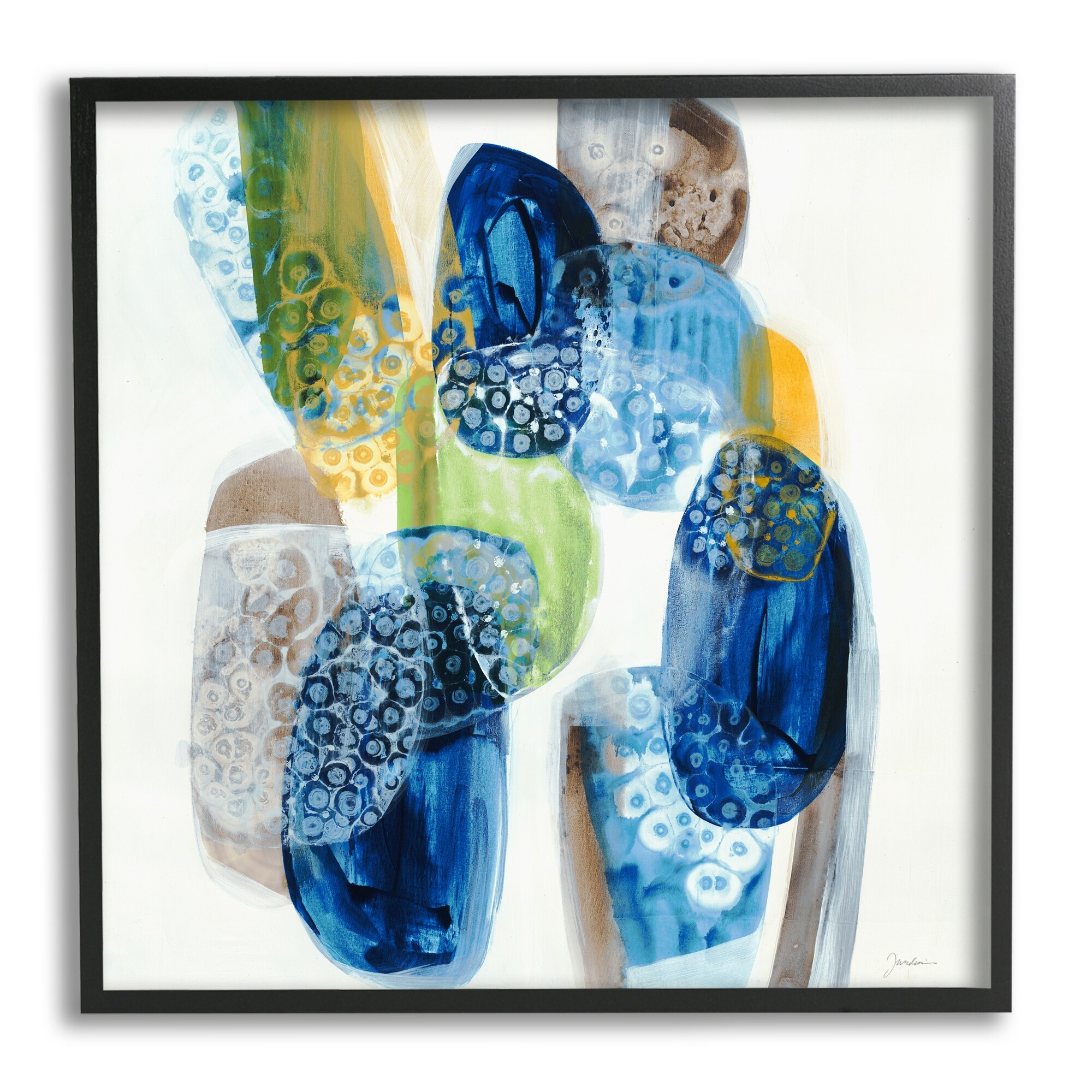 Stupell Industries Pebbled Circular Shapes Vivid Blue Modern Design Framed Wall Art, Design by Liz Jardine