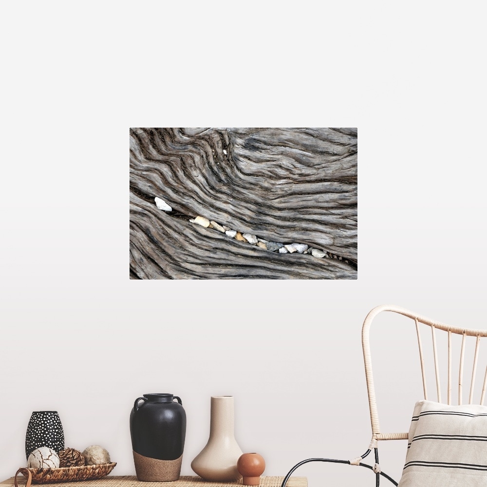 "Pebbles snuggled in a railroad tie." Poster Print - Multi