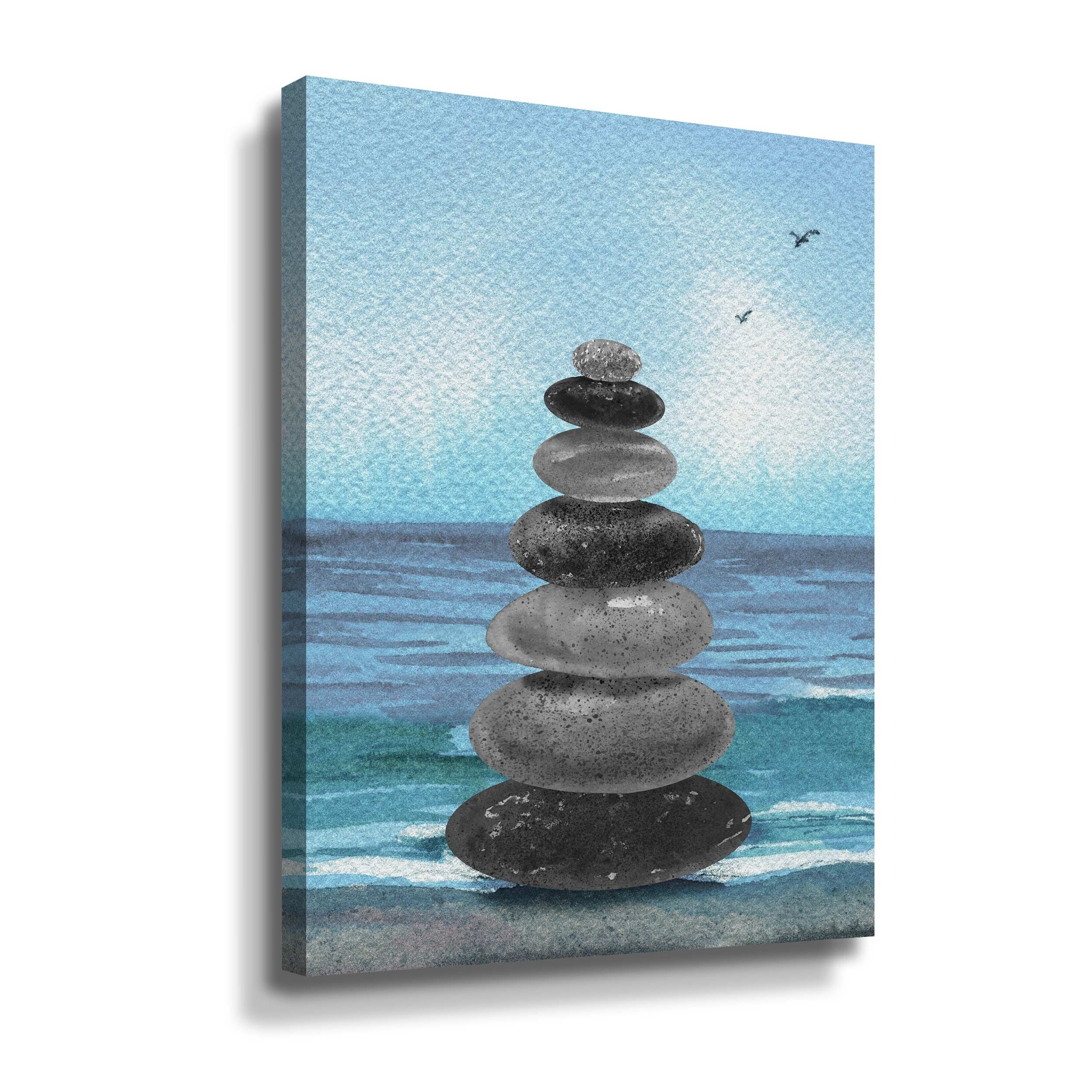 Zen Rocks Cairn on Ocean Shore Meditative Pebbles II Gallery Wrapped Canvas by Irina Sztukowski
